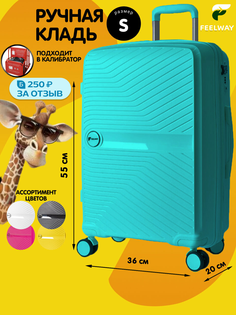 Чемодан FEELWAY, размер S, ярко-желтый