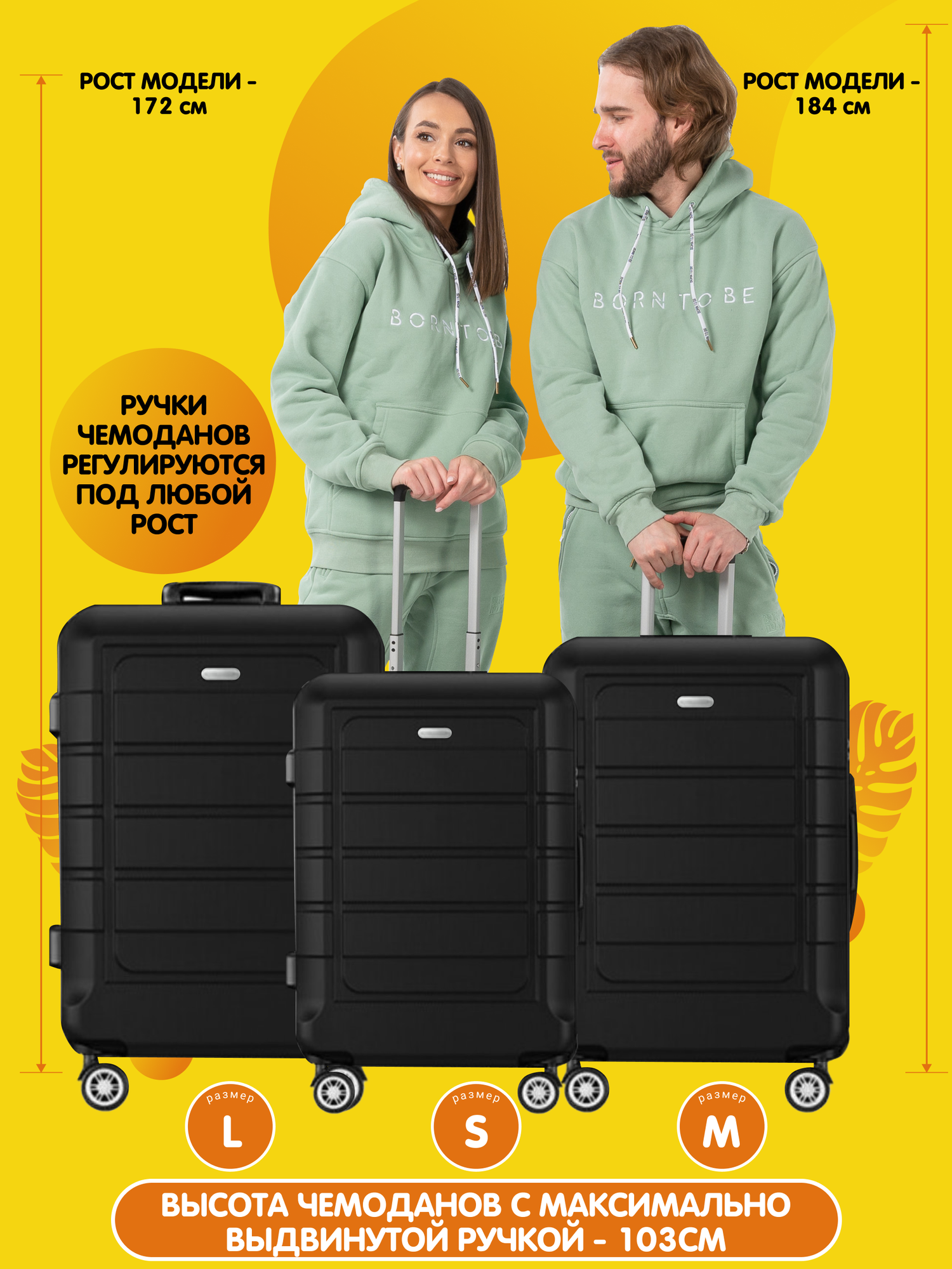 Дорожный чемодан на колесах L маленький, ударопрочный из полипропилена черный
