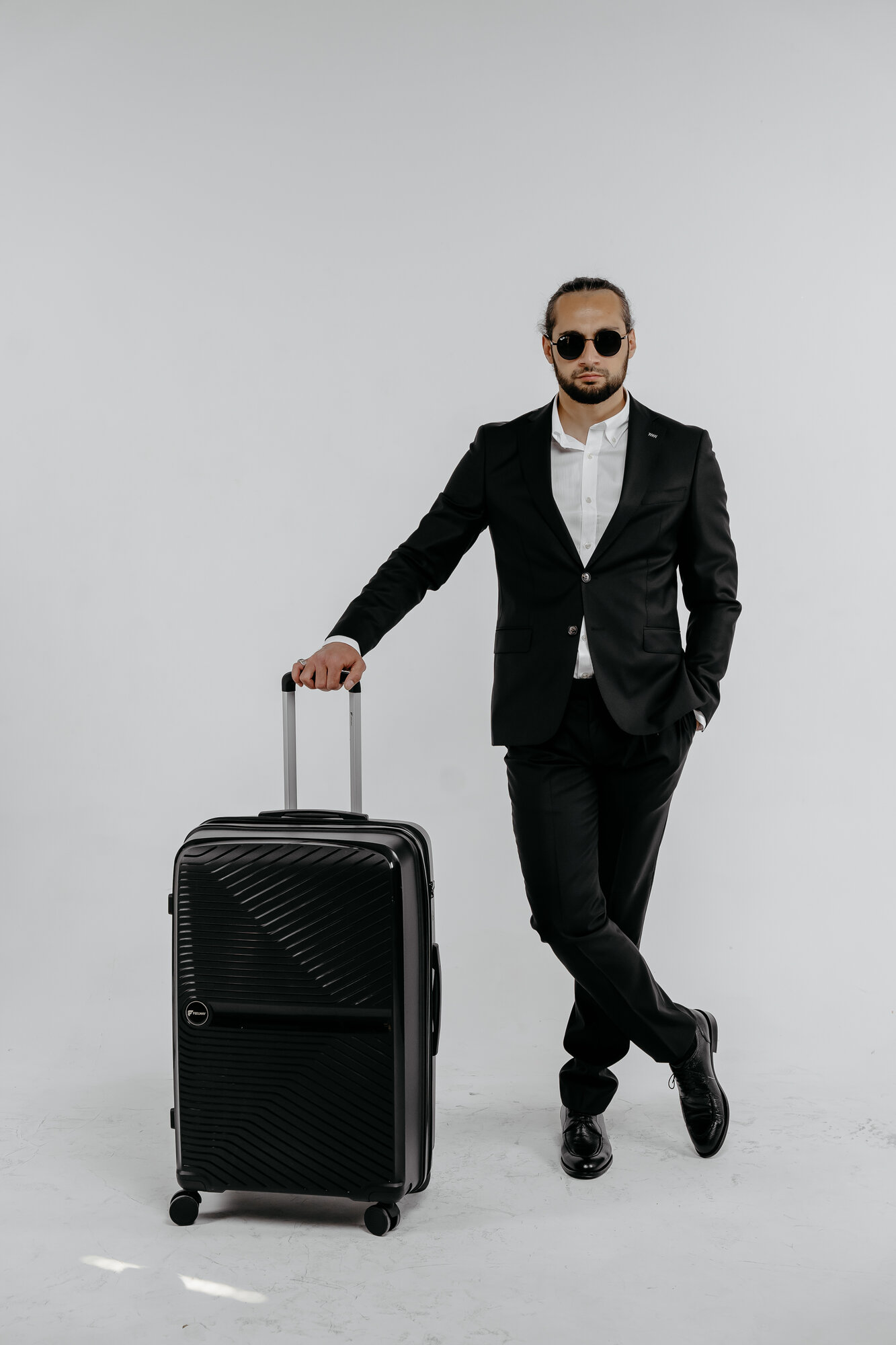 Дорожный чемодан на колесах L маленький, ударопрочный из полипропилена черный