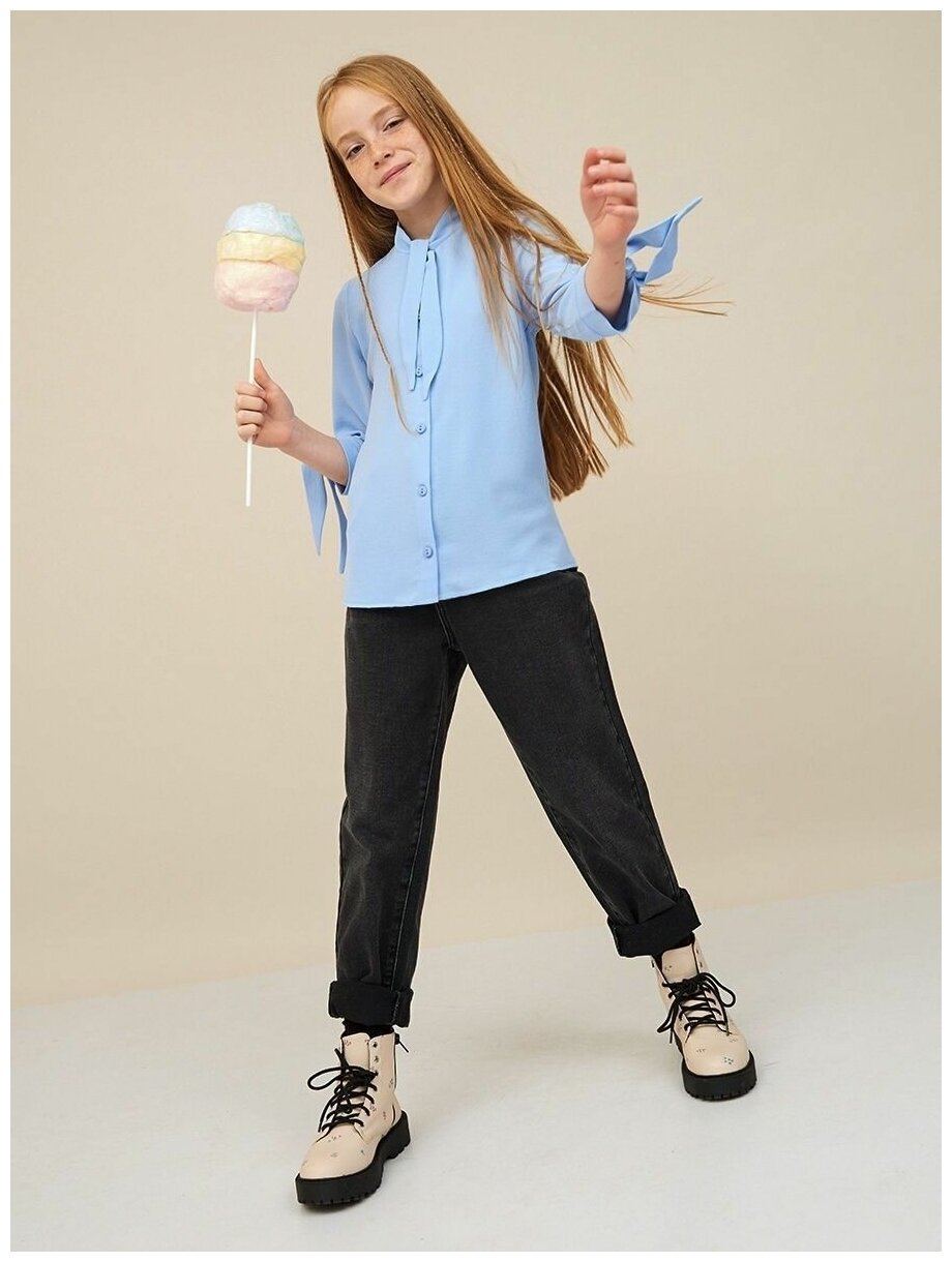 Купить Блузка для девочки подростка школьная праздничная рубашка голубая