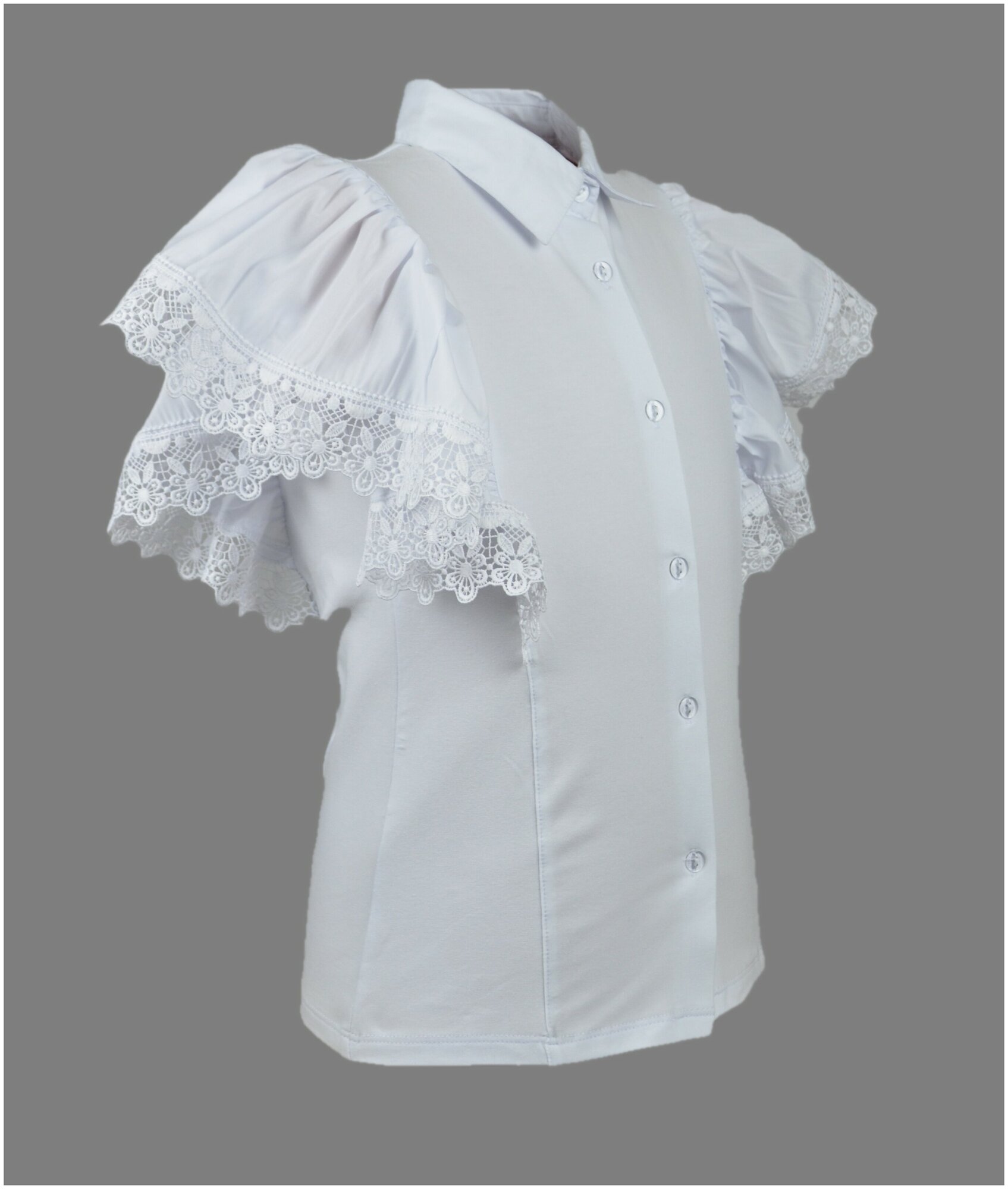 СохранитьБлузка для девочки с коротким рукавом, для школы, повседневная одежда / Белый слон 5452 (белый) р.128 интересное: