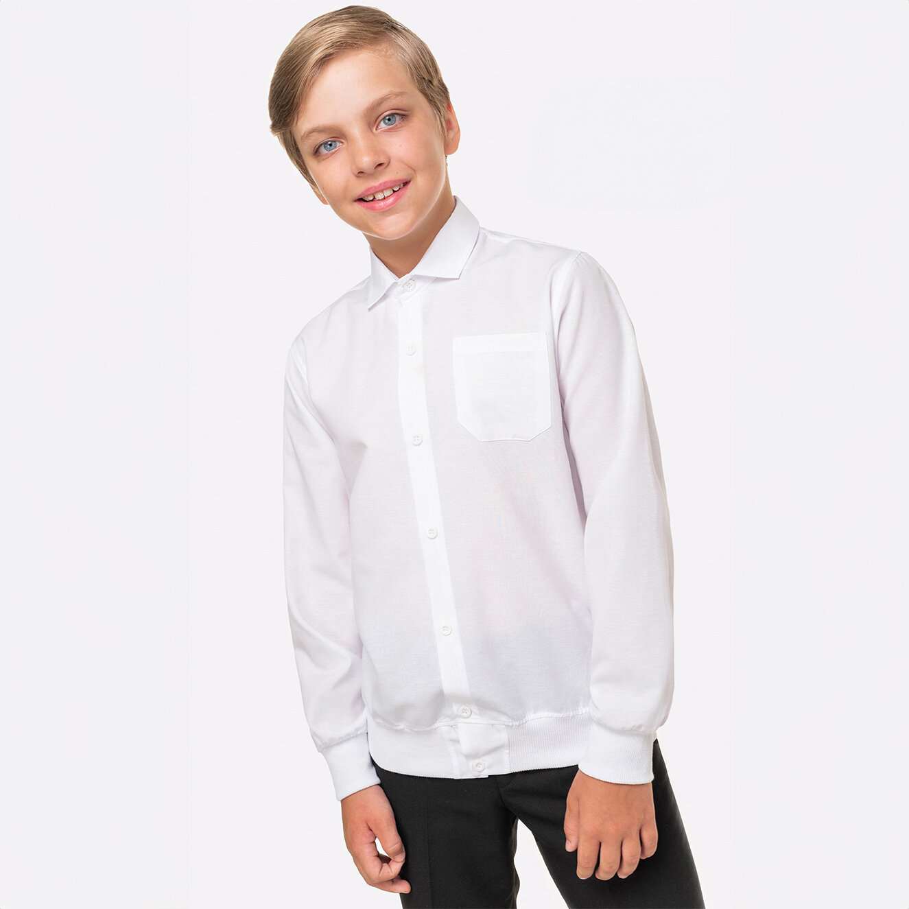 СохранитьРубашка для мальчика белая в школу с длинным рукавом HappyFox, HF1004MBL размер 122, цвет белый интересное: