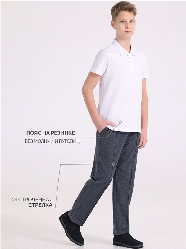 Брюки для мальчика школьные трикотажные на резинке Апрель 1ПББ837258н/1386/*/3832/*/*/*/* серый 146-76