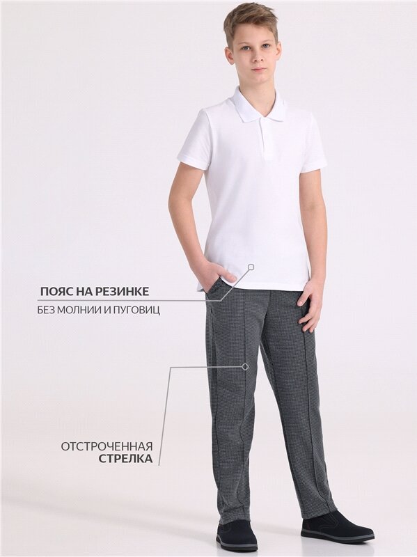 Брюки для мальчика школьные трикотажные на резинке Апрель 1ПББ837258н/1386/*/3832/*/*/*/* серый 146-76
