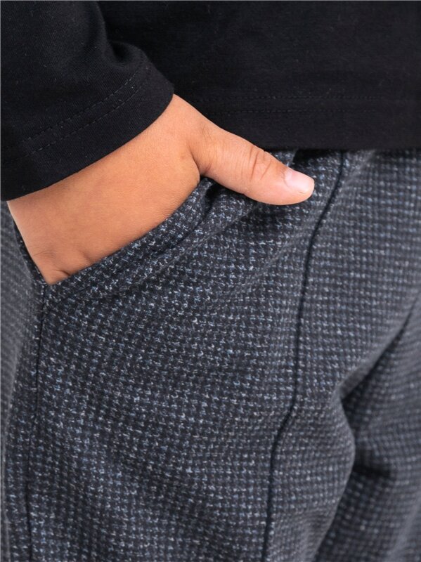 Брюки для мальчика школьные трикотажные на резинке Апрель 1ПББ837258н/1386/*/4820/*/*/*/* черный,серый 64-128