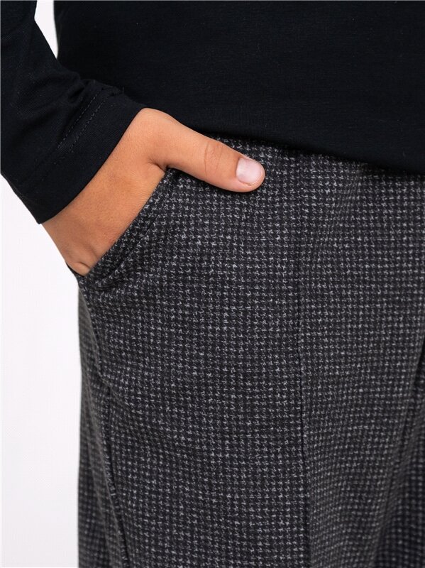 Брюки школьные для мальчика трикотажные на резинке Апрель 1ПББ837258н/982/*/4820/*/*/*/* черный,серый 64-128