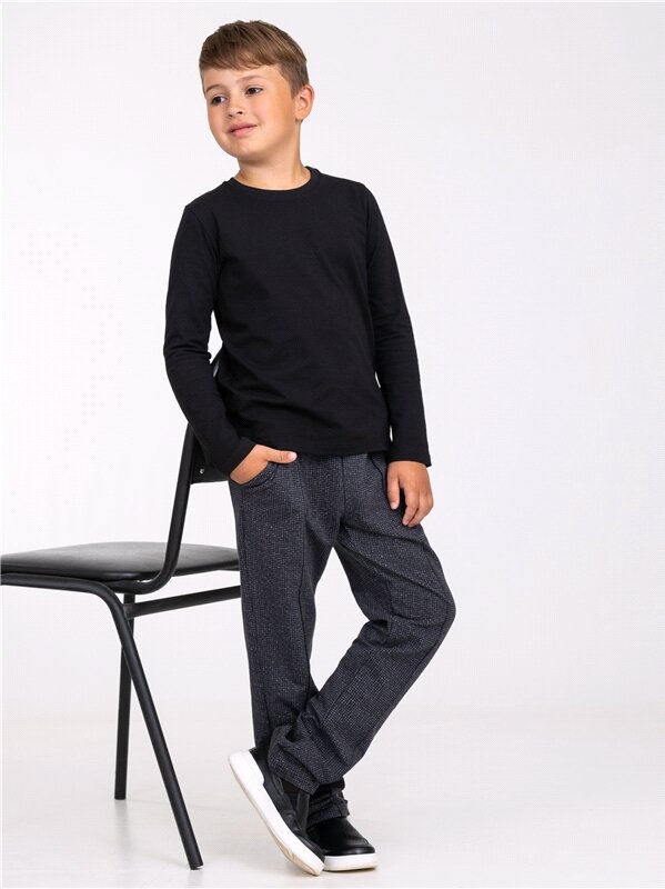 Брюки для мальчика школьные трикотажные на резинке Апрель 1ПББ4206258/1386/599/*/*/*/*/* черный 128-64