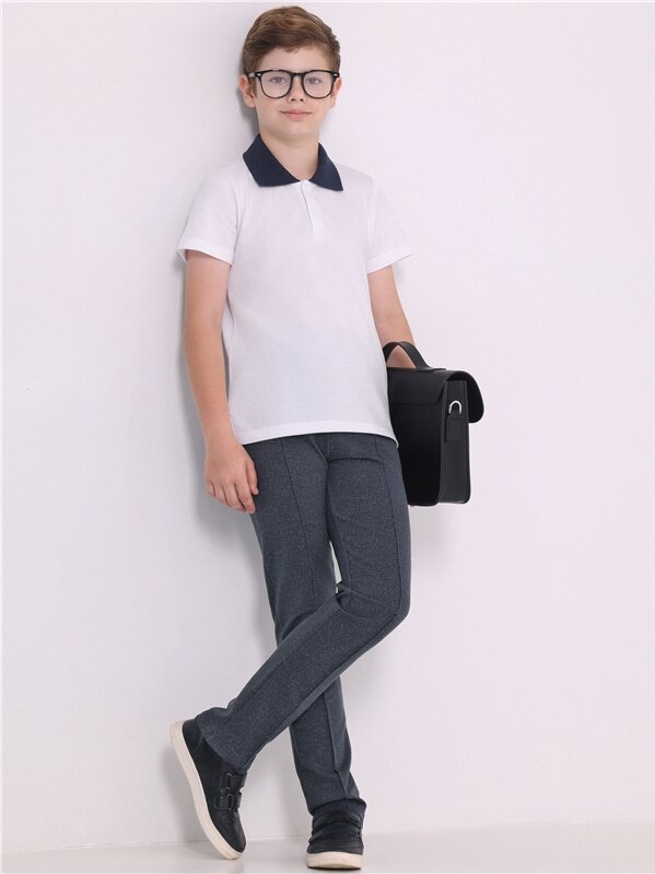 Купить Брюки для мальчика школьные на резинке трикотажные Апрель 1ПББ837258н/982/*/5245/*/*/*/* синий,серый 68-134