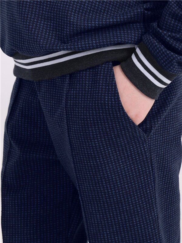 Брюки для мальчика школьные трикотажные на резинке Апрель 1ПББ837258н/982/*/4028/*/*/*/*/1 синий,серый 76-146