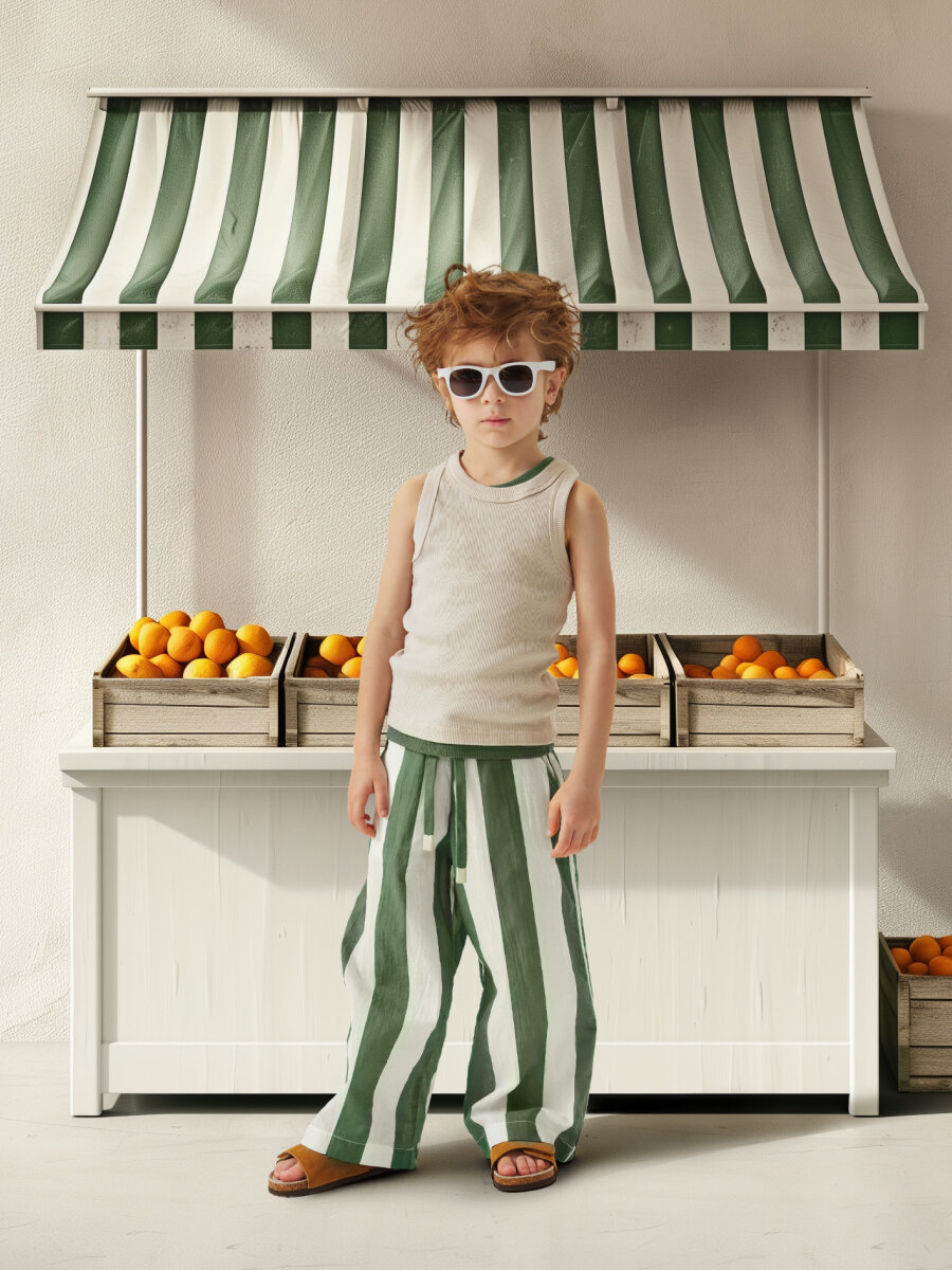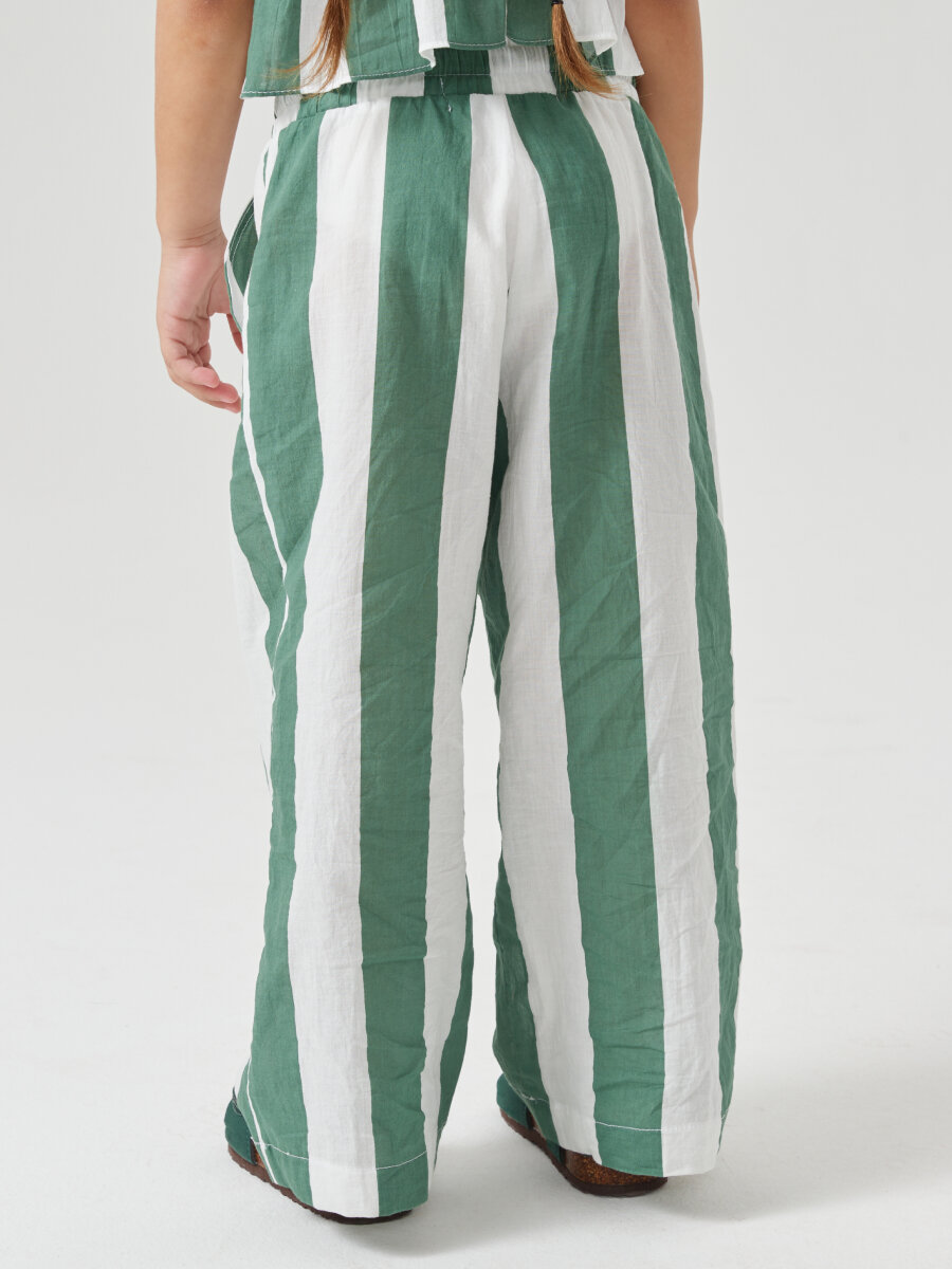 88190, Брюки детские Happy Baby, брюки летние хлопковые на завязках, одежда для девочки и мальчика, зеленые в полоску, размер 116-122