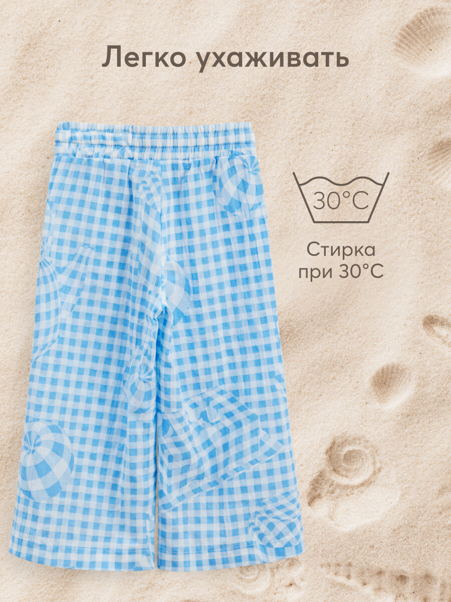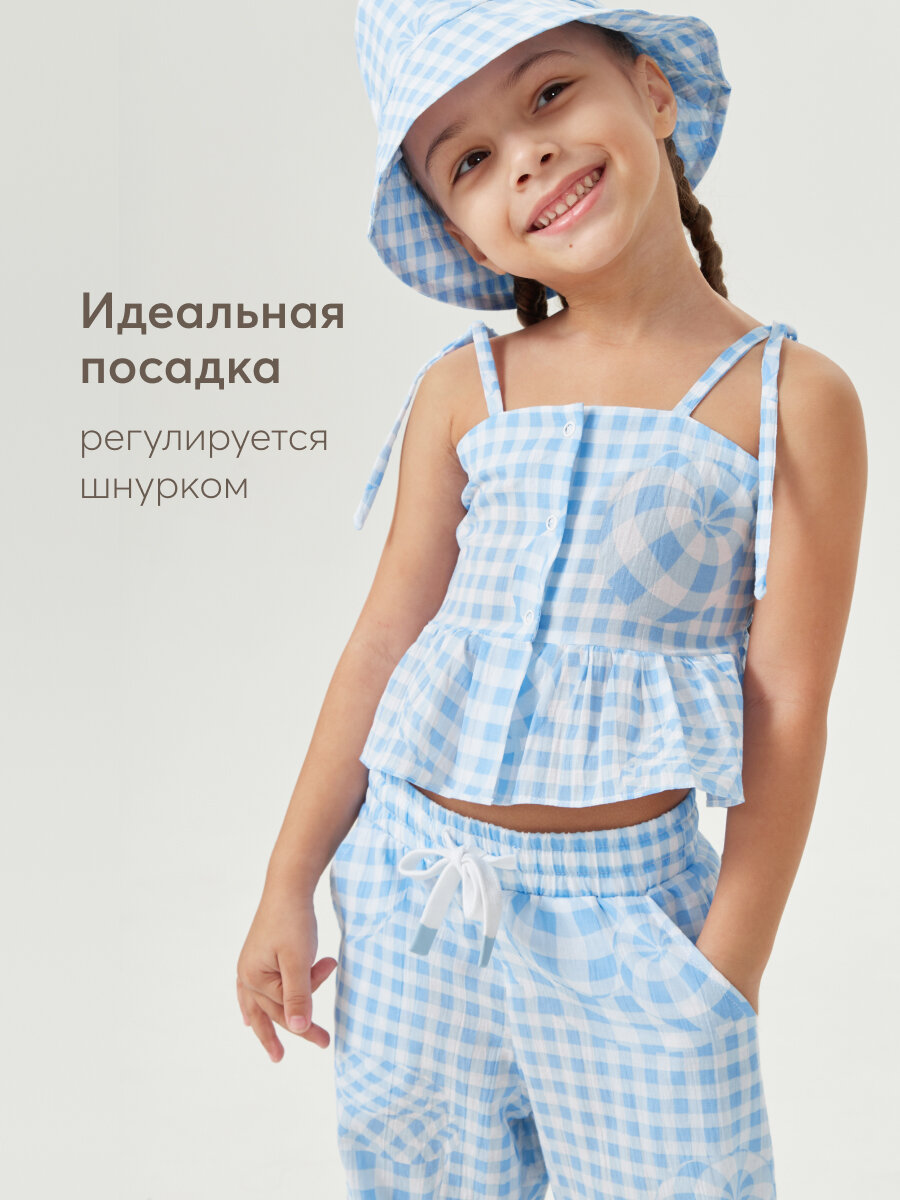Сохранить88190, Брюки детские Happy Baby, брюки летние хлопковые на завязках, одежда для девочки и мальчика, голубые в клетку, размер 116-122 интересное: