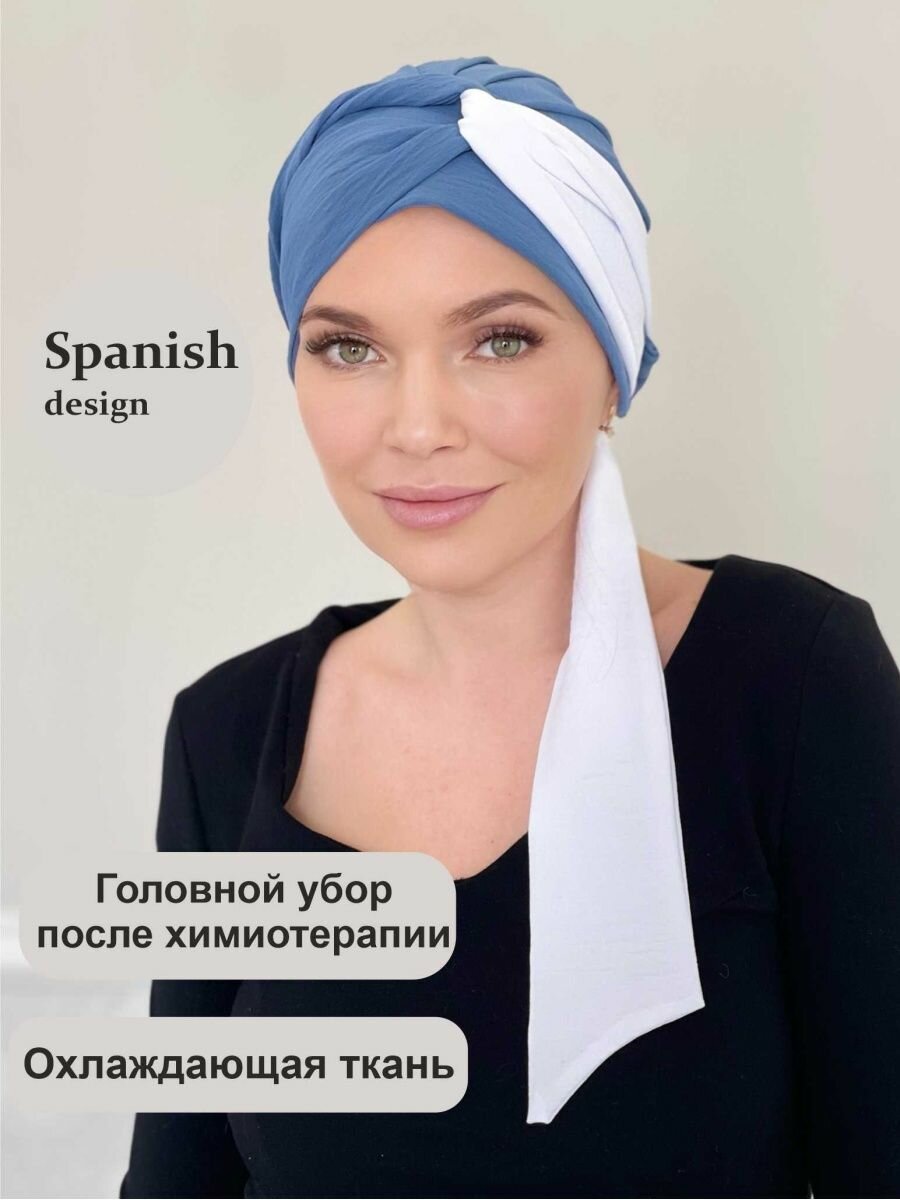 Тюрбан Katerina Lev для женщин, размер 52-60, бирюзовый/белый
