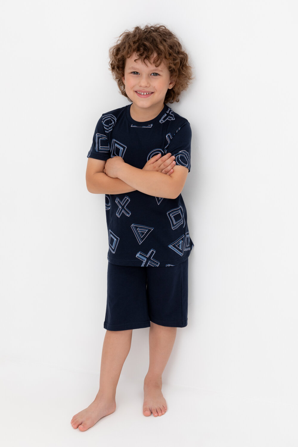 Пижама для мальчика из натурального хлопка, Crockid К 1614/объемные фигуры,индиго р 76/146