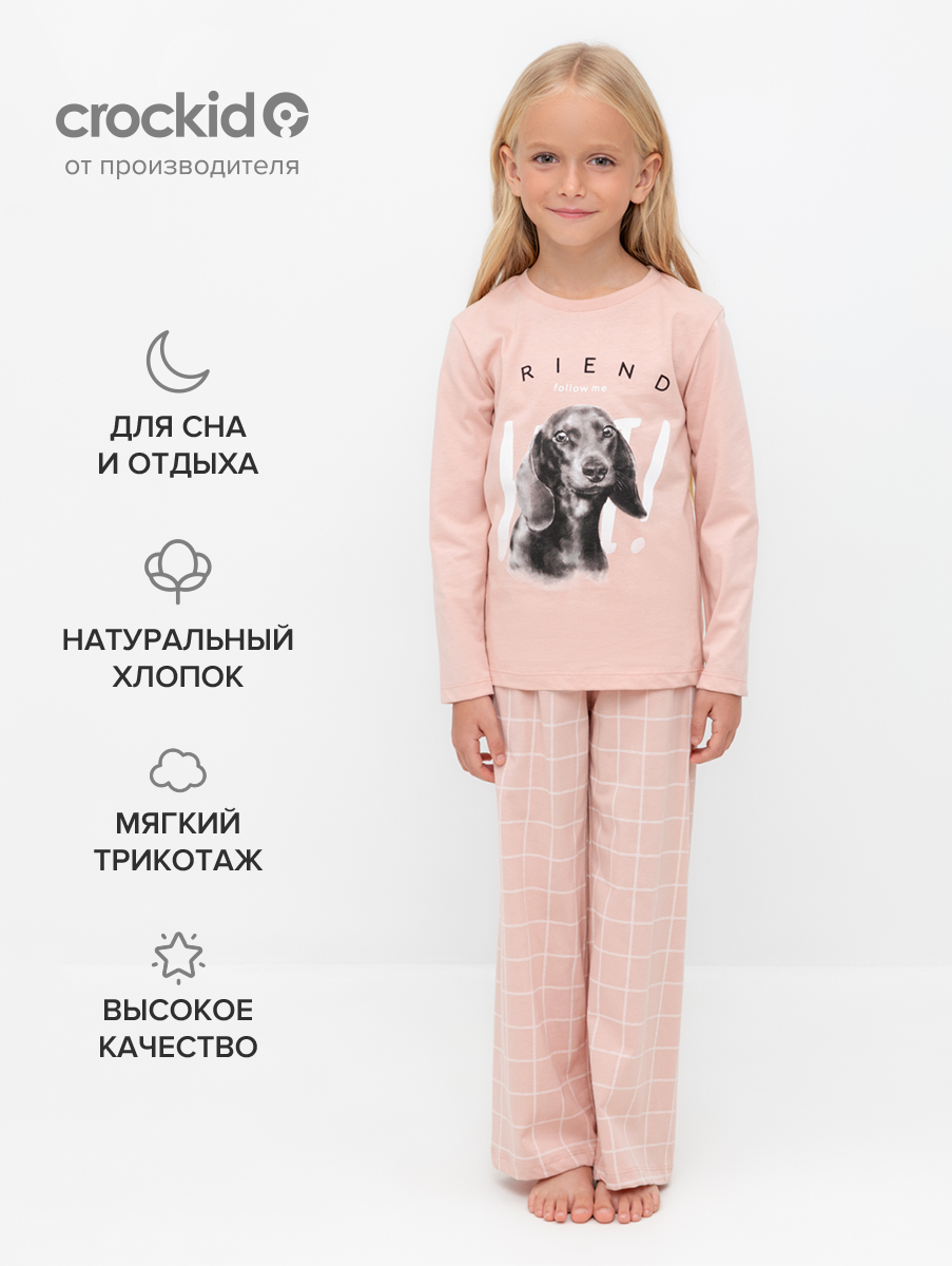 Пижама для девочки, Crockid К 1623/дымчатая роза,двойная клетка р 64/128