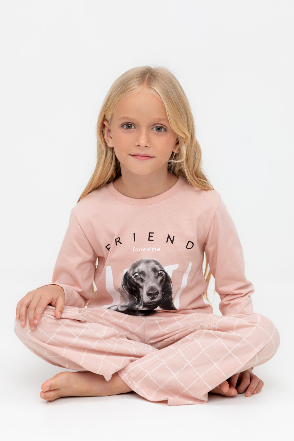 Пижама для девочки, Crockid К 1623/дымчатая роза,двойная клетка р 80/152