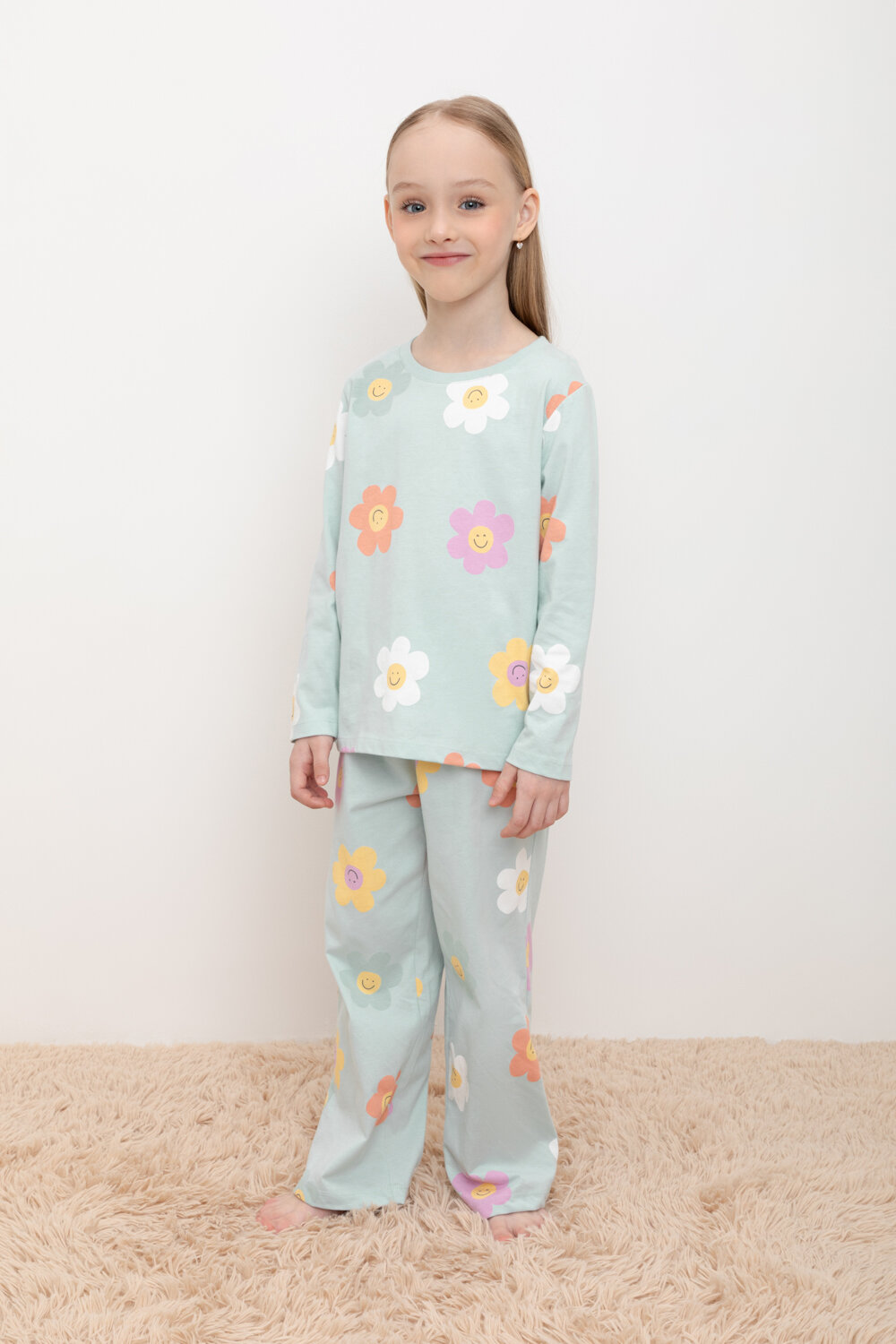 Пижама для девочки, Crockid К 1622/голубой опал,цветы пижама дет р 64/122