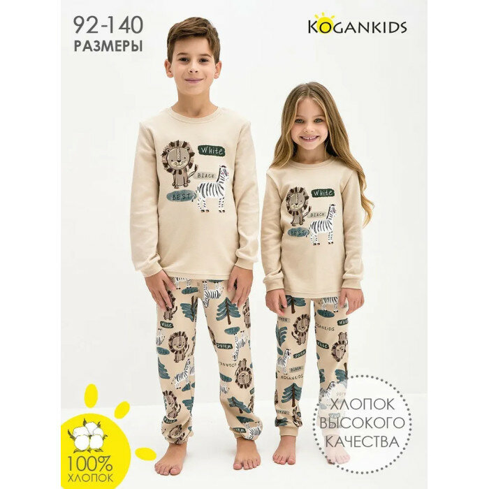 Пижама для мальчика,KOGANKIDS,бежевый набивка Сафари, 140 / 10 лет