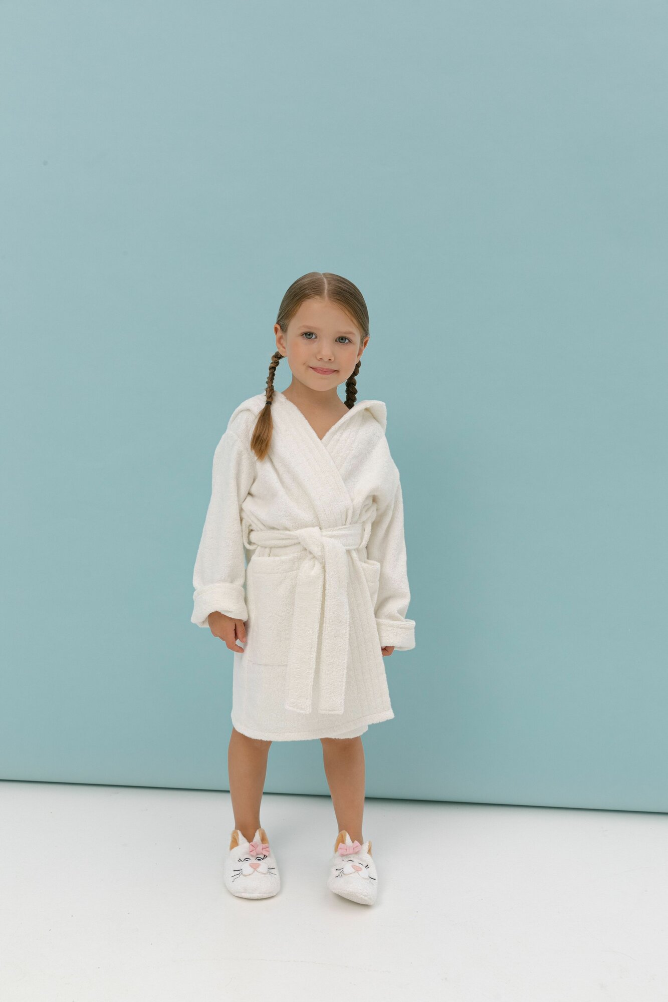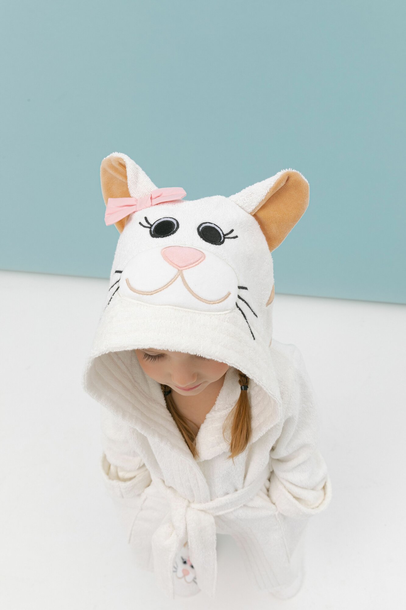 Халат махровый с капюшоном Fluffy Bunny Кошка, цвет Молочный, р.128
