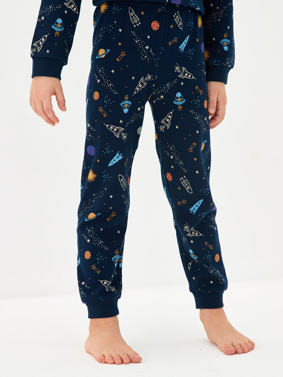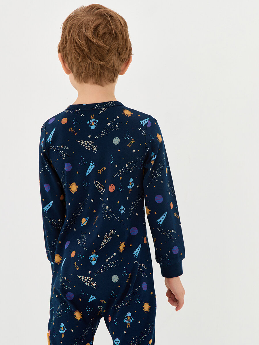 Купить Комбинезон для сна для мальчика,KOGANKIDS,тёмно-синий набивка галактика, 116 / 6 лет