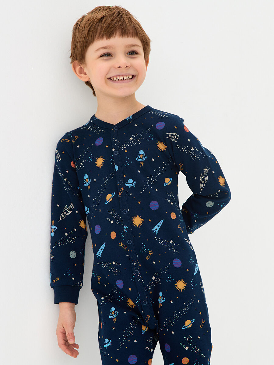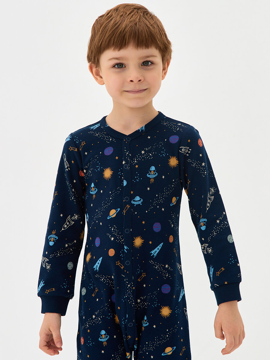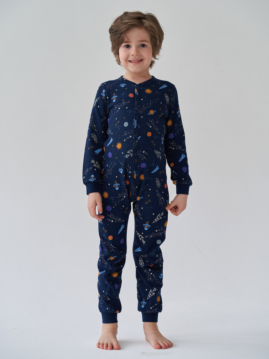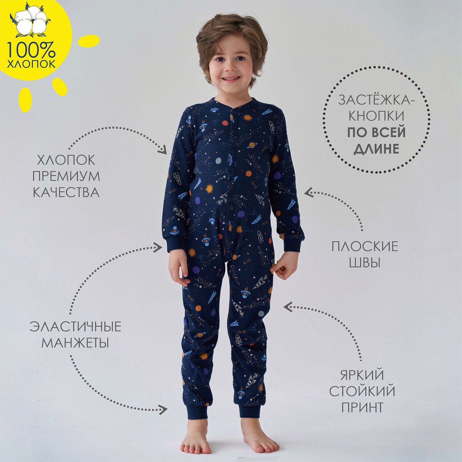 Комбинезон для сна для мальчика,KOGANKIDS,тёмно-синий набивка галактика, 116 / 6 лет интересное: