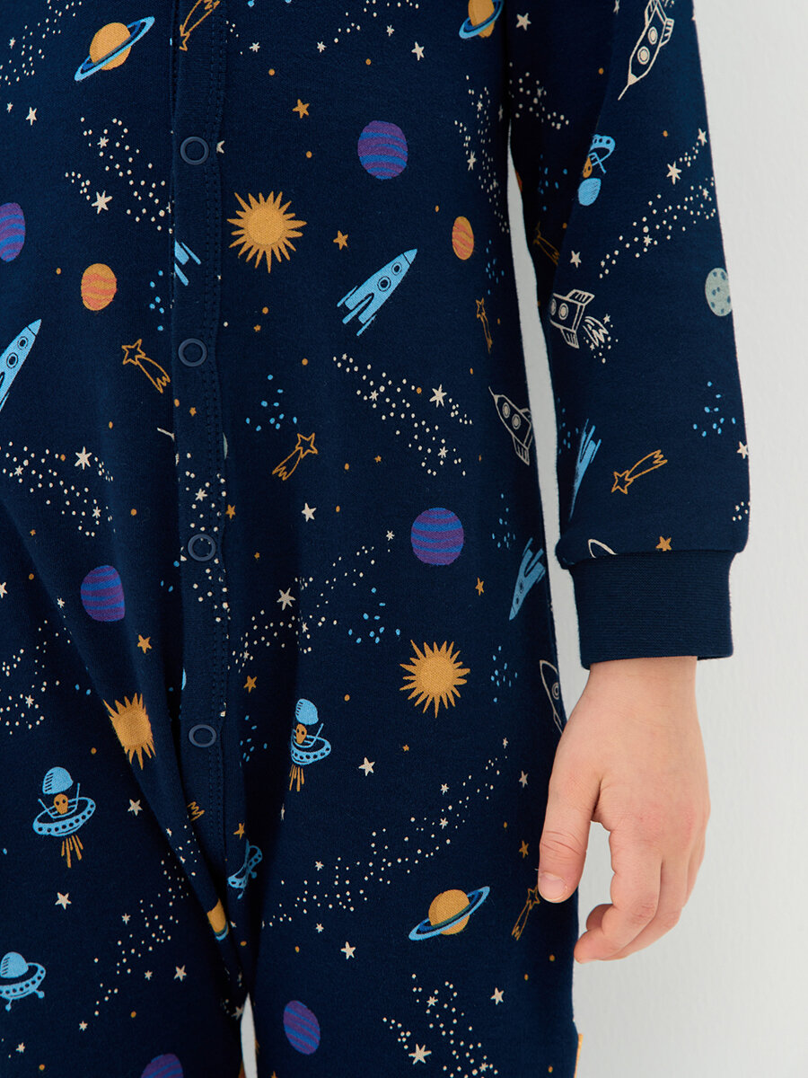 Комбинезон для сна для мальчика,KOGANKIDS,тёмно-синий набивка галактика, 104 / 4 года