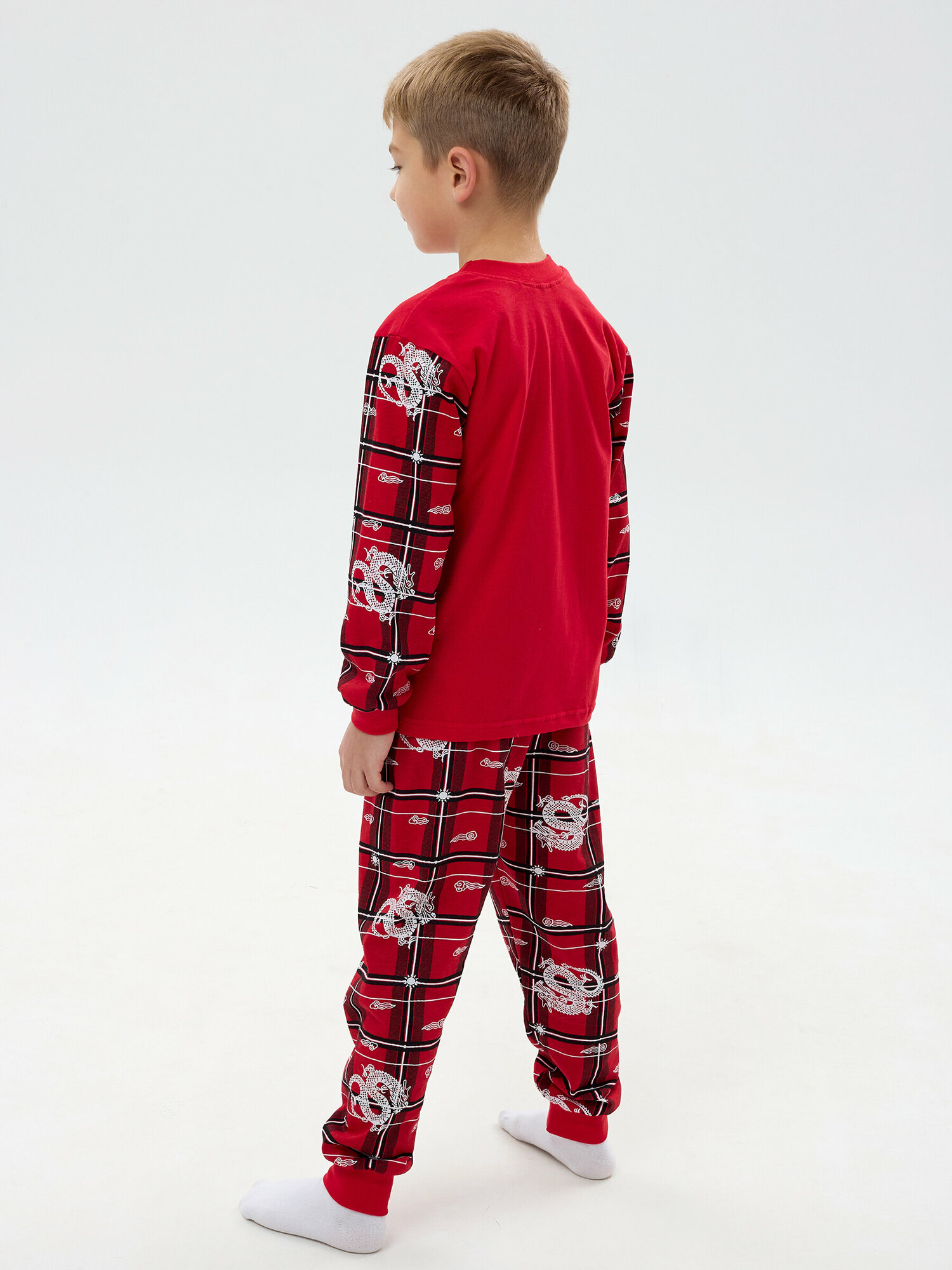Купить Новогодняя пижама без начеса, клетка дракон, размер 98