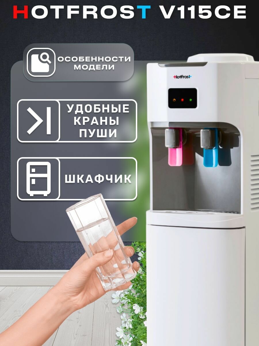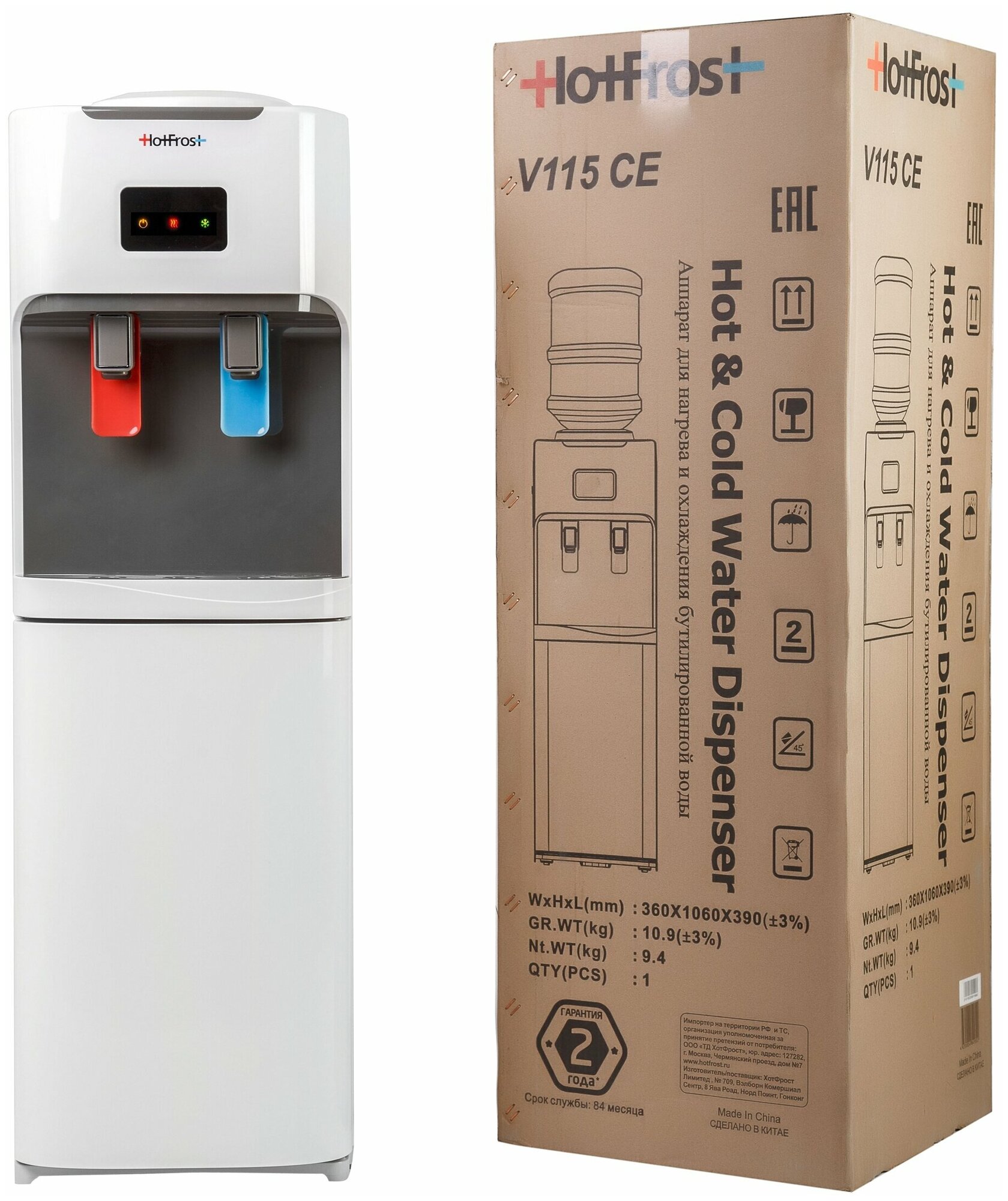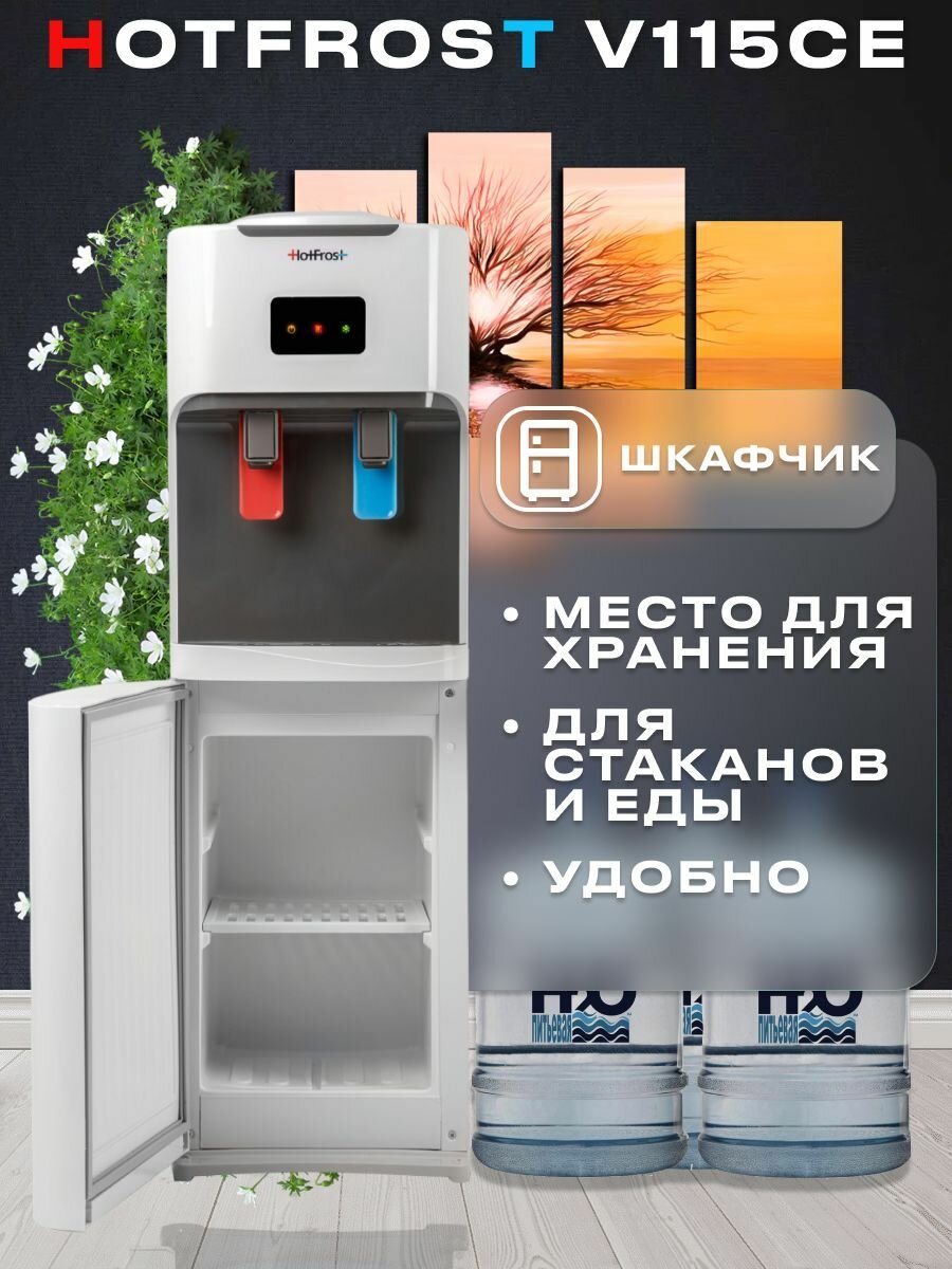 Кулер для воды HOT FROST V115CE, напольный, нагрев/охлаждение электронное, шкаф, 2 крана, белый, 120211505
