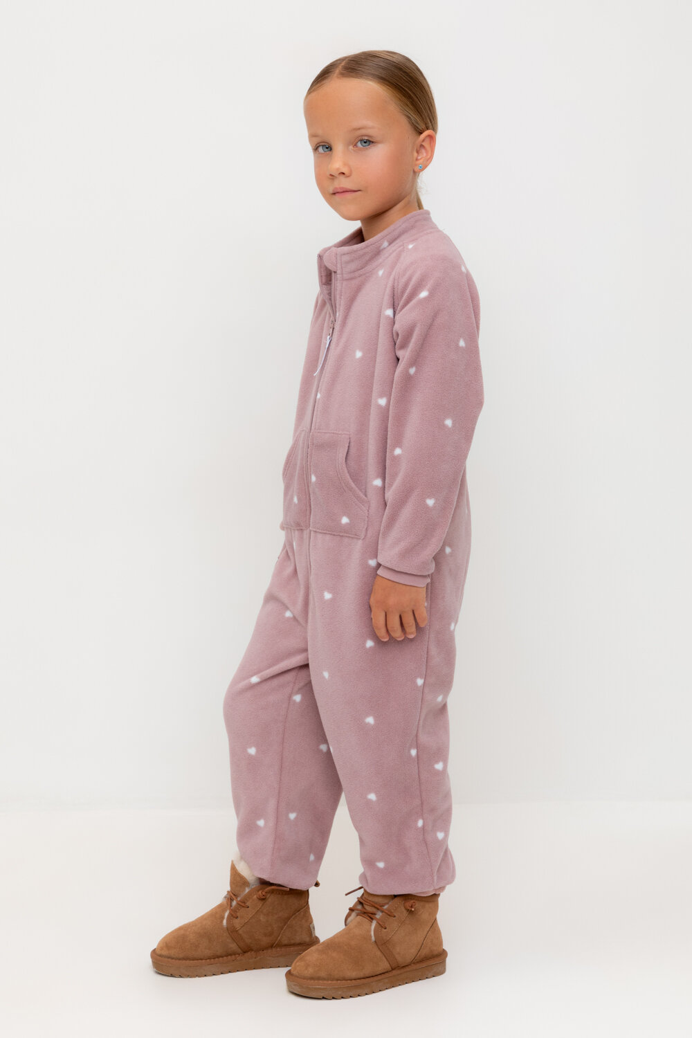 Флисовый комбинезон на молнии для девочки, Crockid ФЛ 60005/серая пудра,сердечки р 60/116
