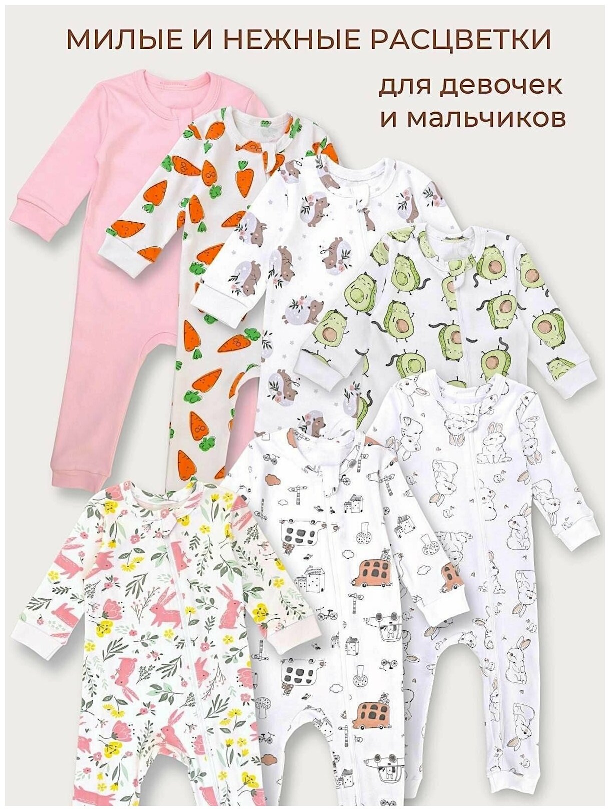 Комбинезон нательный слип на молнии Bebo для новорожденных малышей, мальчиков и девочек, зайчики в цветах, 68 см.