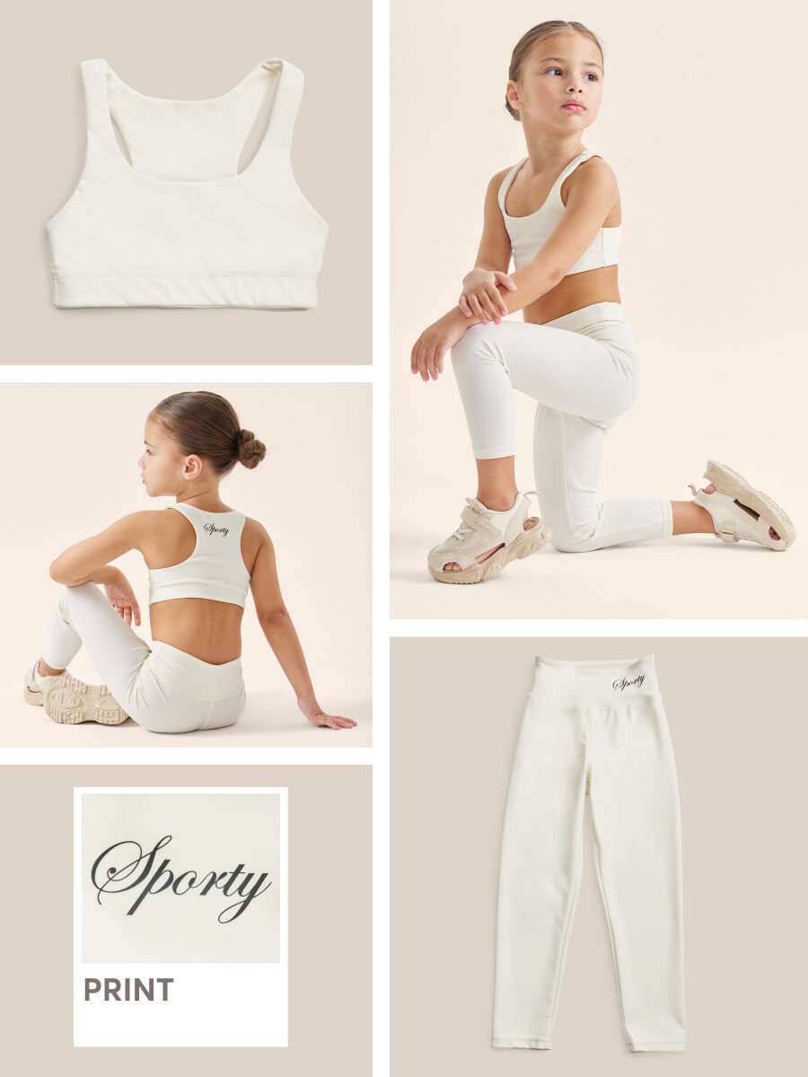 Купить 50680, Спортивный костюм от Happy Baby, для девочки, комплект, легинсы и топ, молочный, размер 122-128