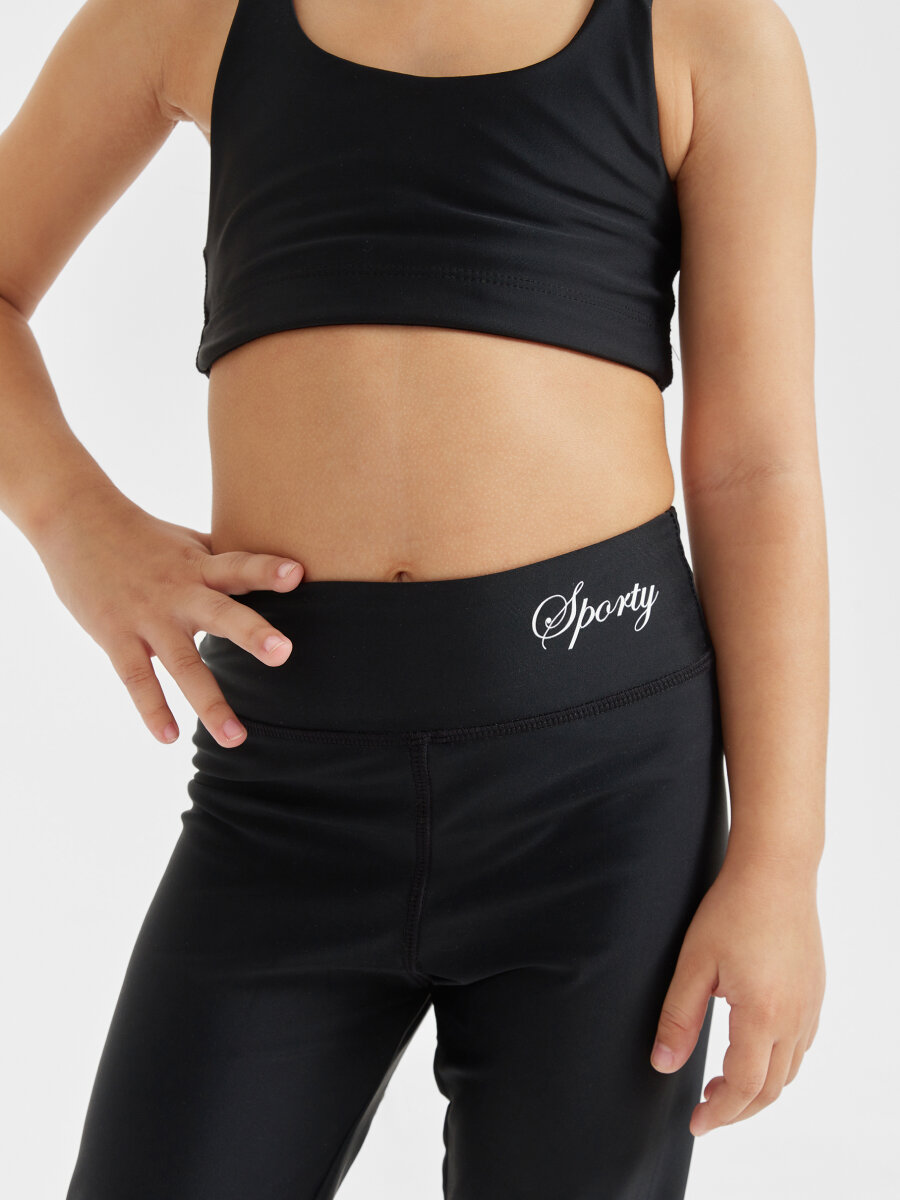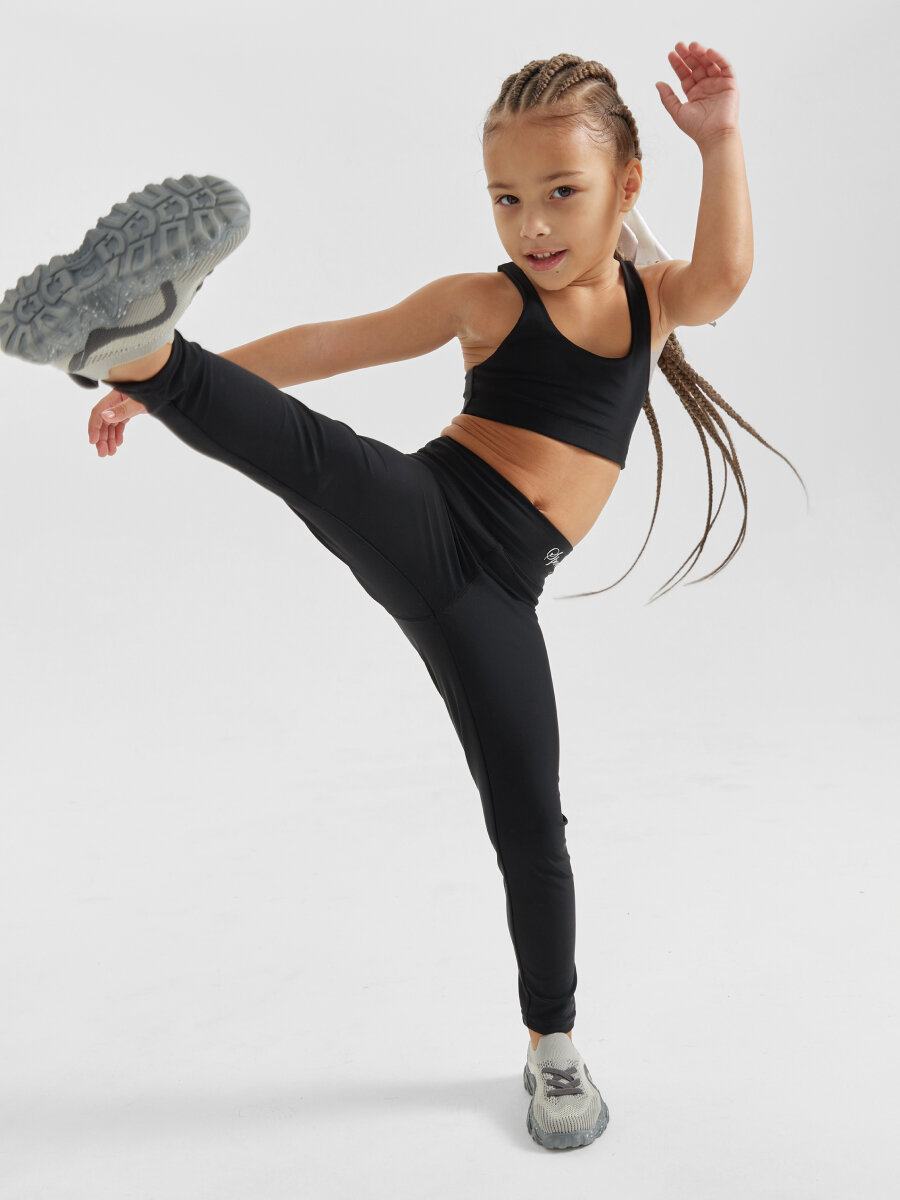 Купить 50680, Спортивный костюм от Happy Baby, для девочки, комплект, легинсы и топ, черный, размер 110-116