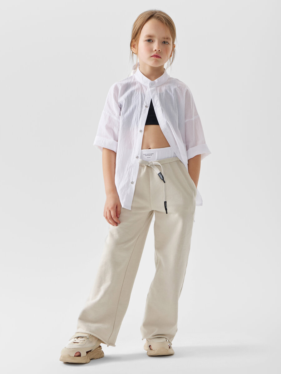 50680, Спортивный костюм от Happy Baby, для девочки, комплект, легинсы и топ, молочный, размер 122-128