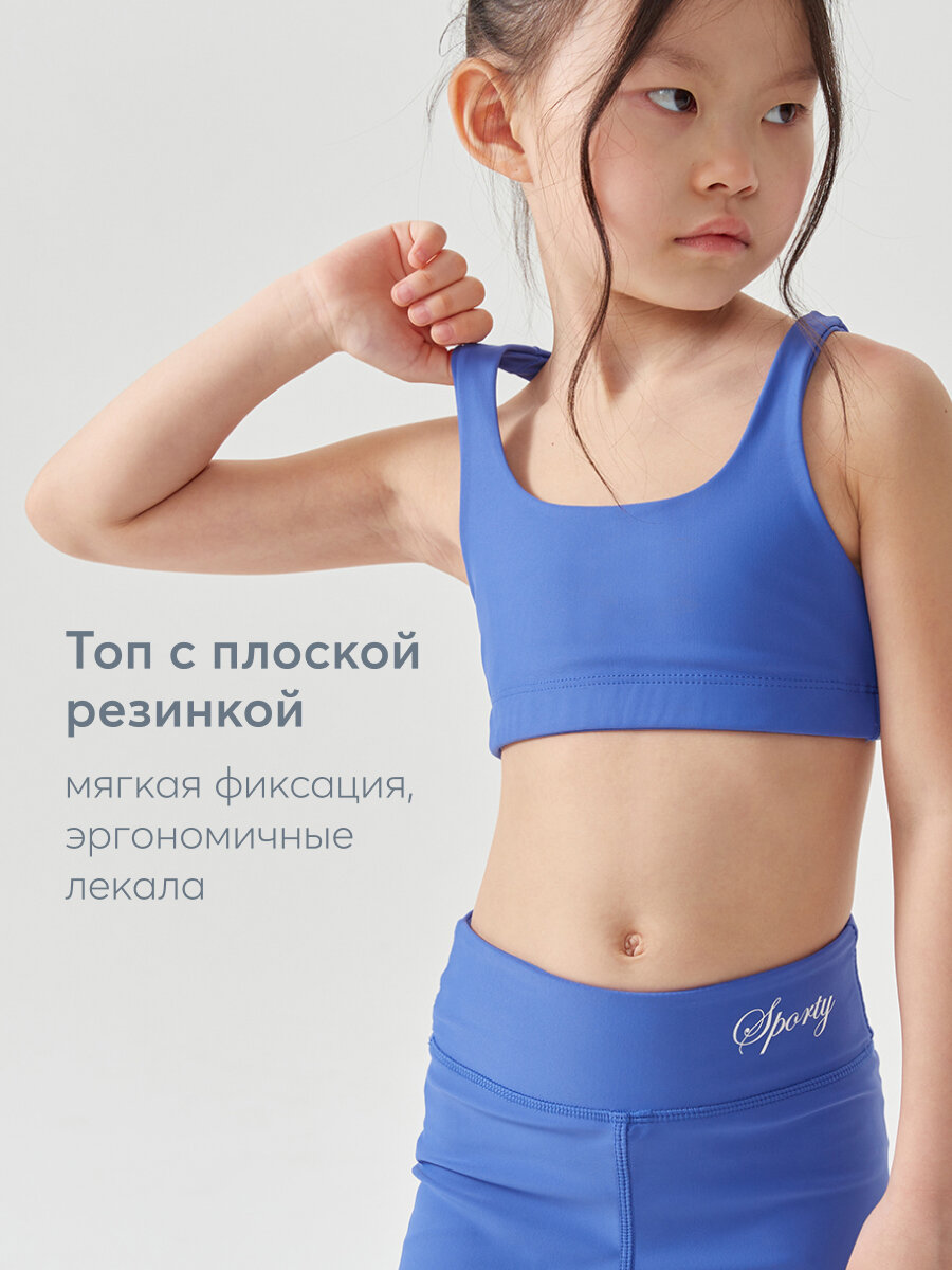 Сохранить50680, Спортивный костюм от Happy Baby, для девочки, комплект, легинсы и топ, синий, размер 98-104 интересное: