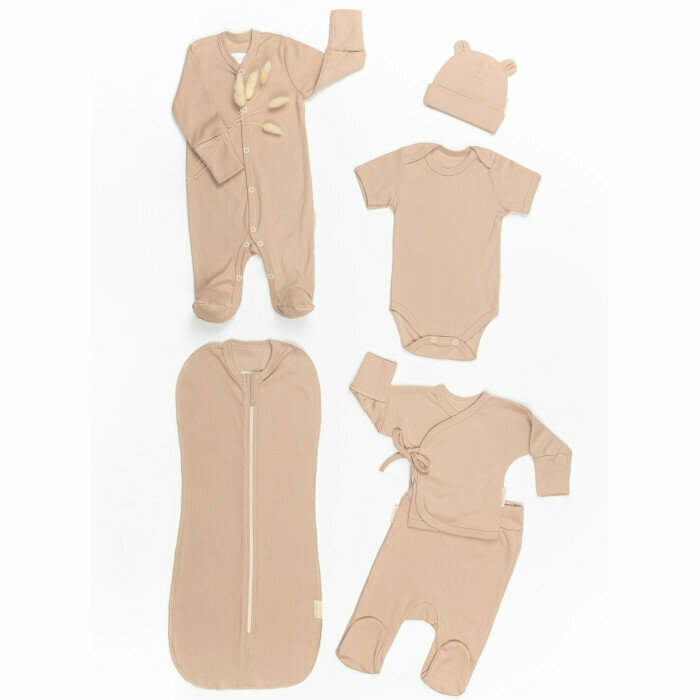 Комплект на выписку детский Amarobaby Newborn 6 предметов , бежевый, размер 56-62