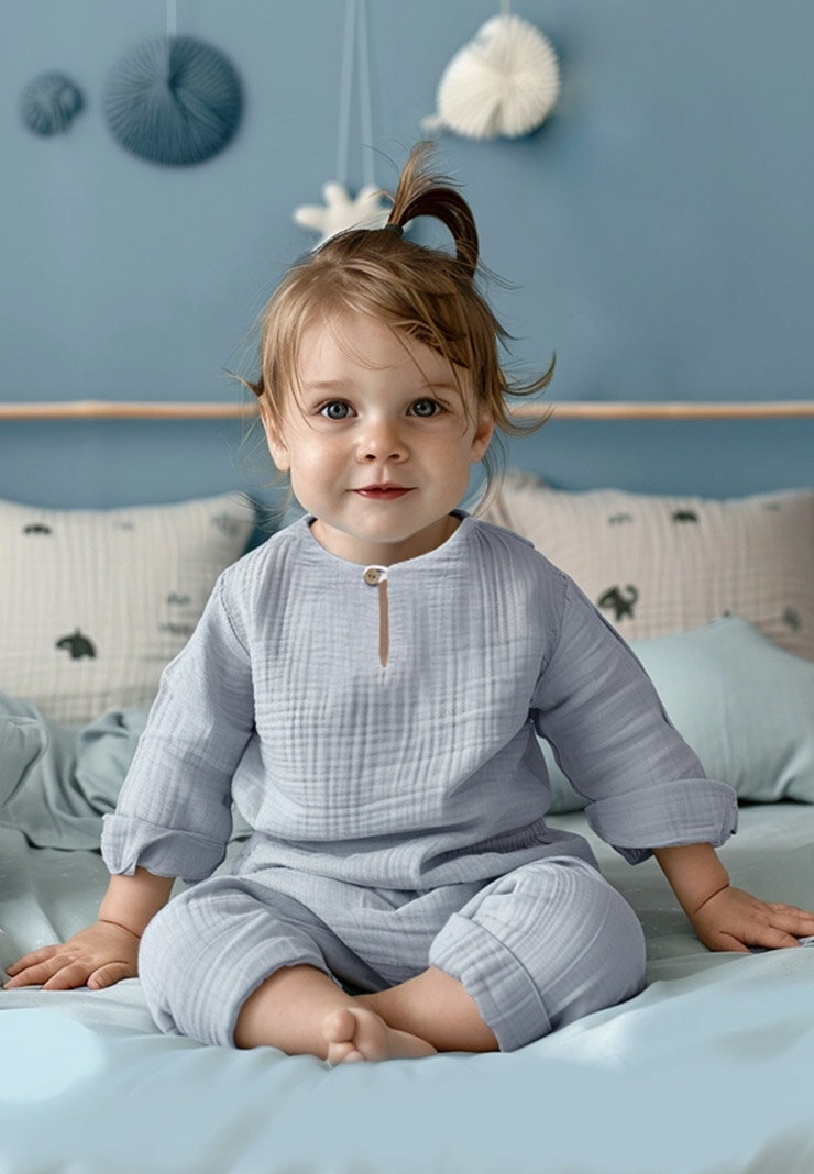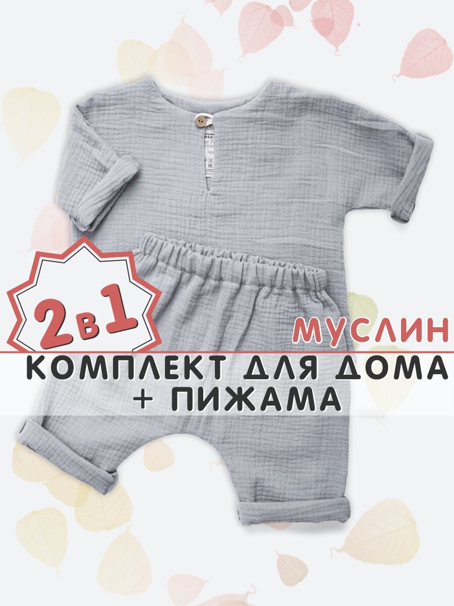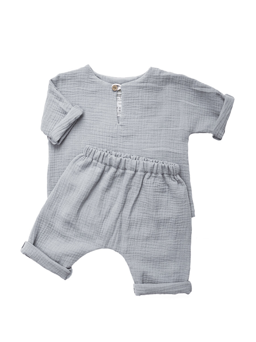 Купить Комплект (рубашка и штанишки) Самурай муслин Серо-голубой