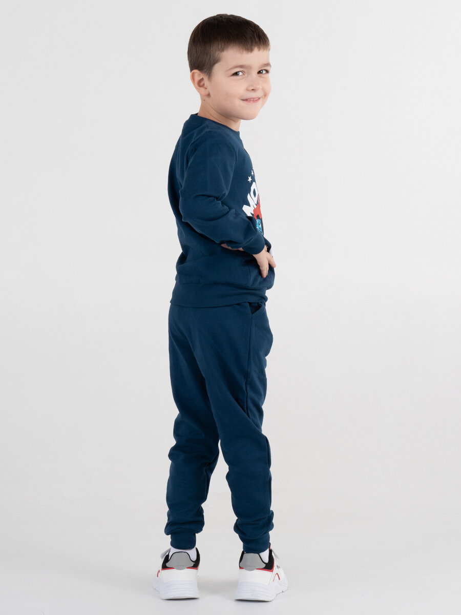 Спортивный костюм для мальчика "Monster Rally", рост 122, индиго, футер, без начеса, детский трикотаж, хлопок, худи, джоггеры, детский