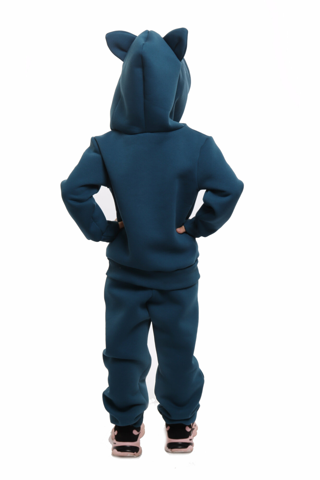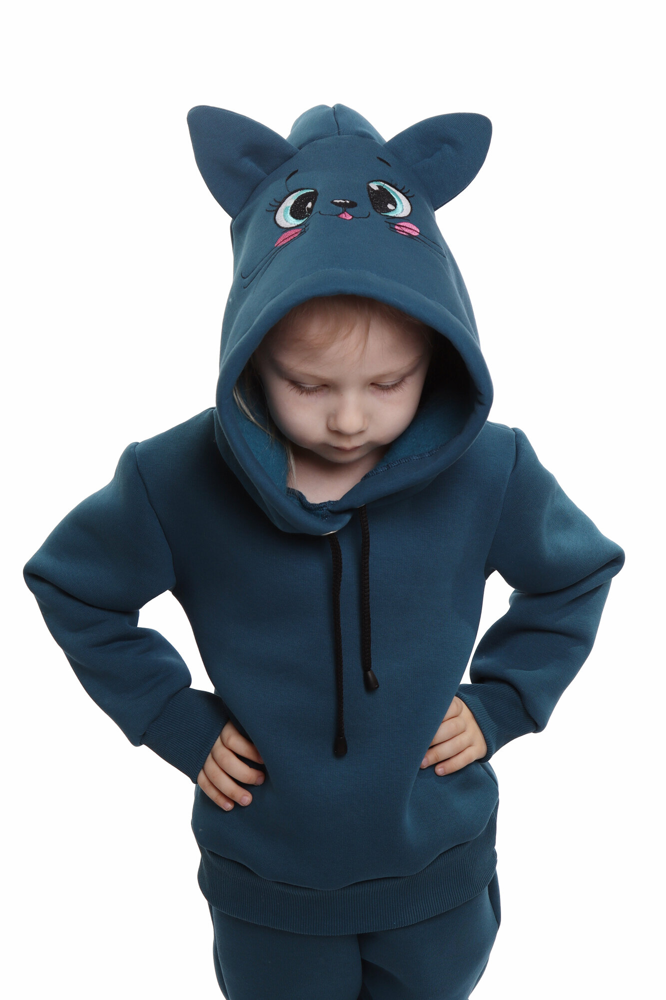 Сохранить146-К2 Костюм детский утепленный, худи с капюшоном, с ушками и вышивкой Кот, цвет-петролиум, размер 92 интересное: