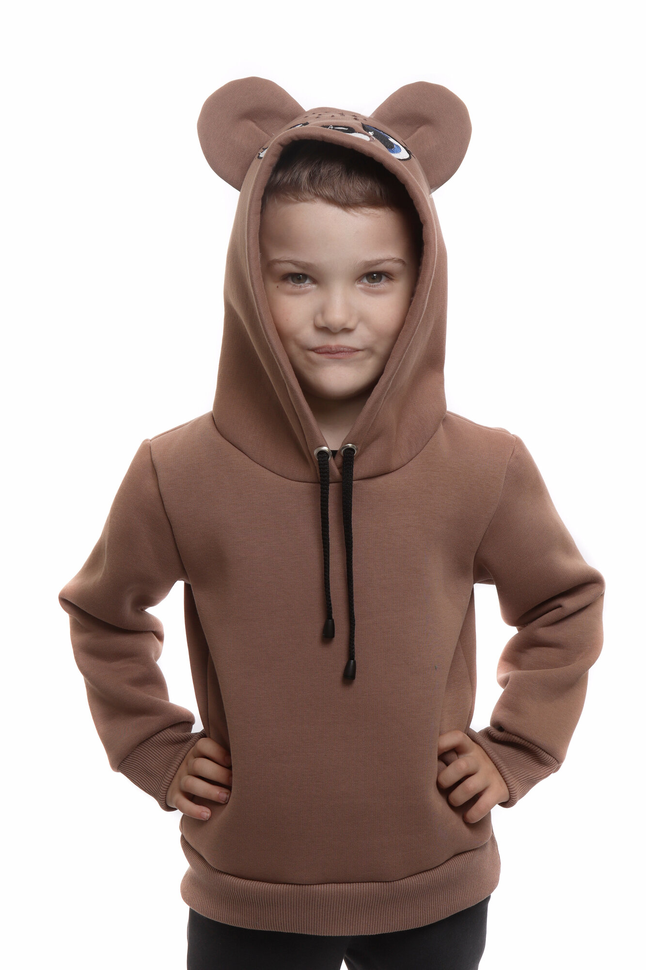Сохранить146-К2 Костюм детский утепленный, худи с капюшоном, с ушками и вышивкой Мишка, цвет-кофе, размер 86 интересное: