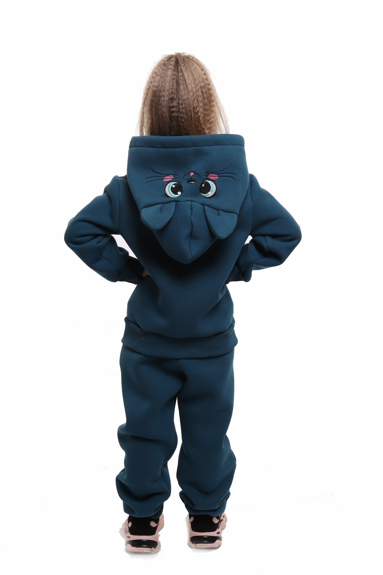 Сохранить146-К2 Костюм детский утепленный, худи с капюшоном, с ушками и вышивкой Кот, цвет-петролиум, размер 104 интересное: