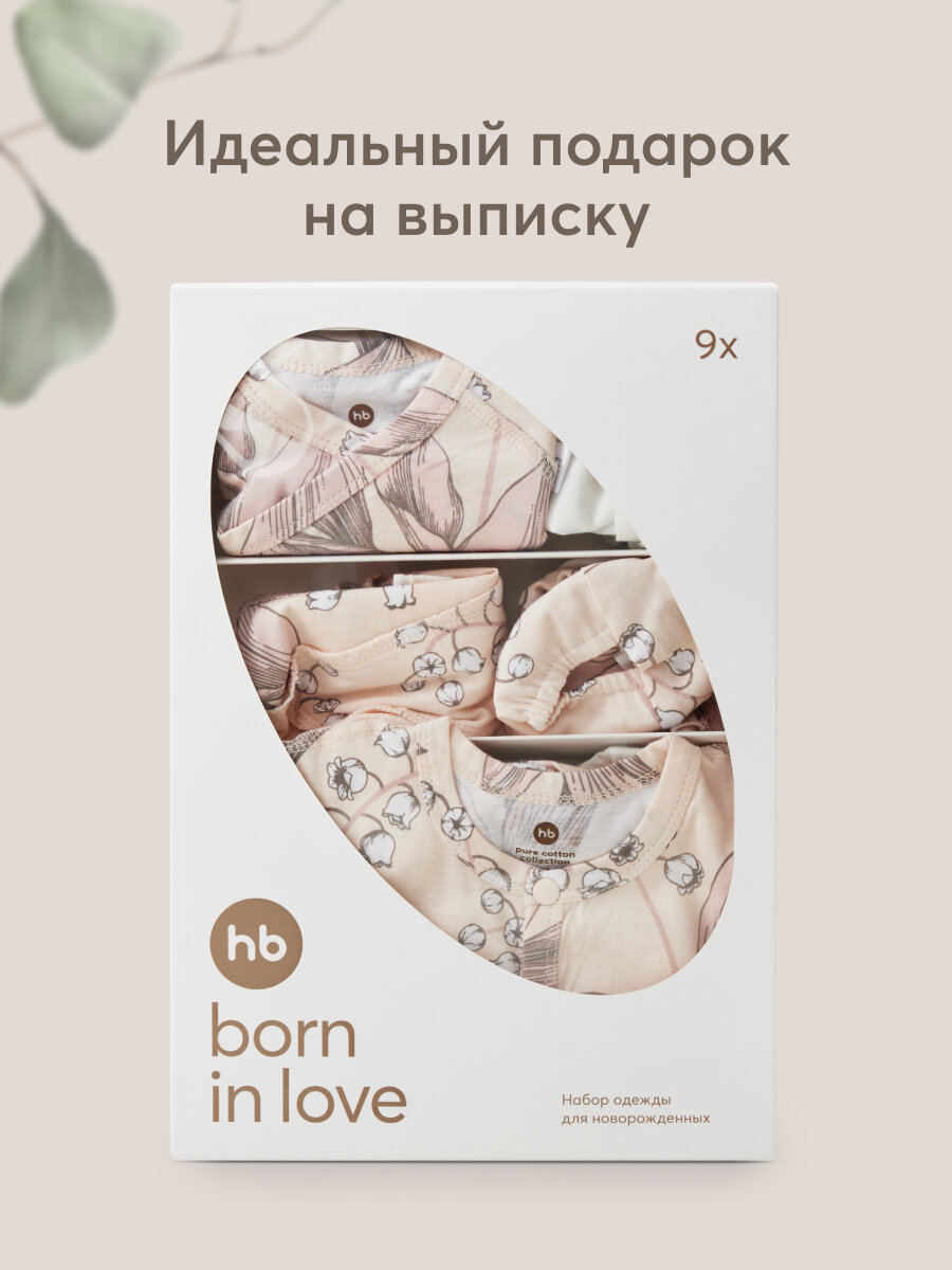 90111, Набор одежды для новорожденных Happy Baby, хлопок, 9 предметов, на выписку, подарочный, молочный и розовый, рост 56 интересное: