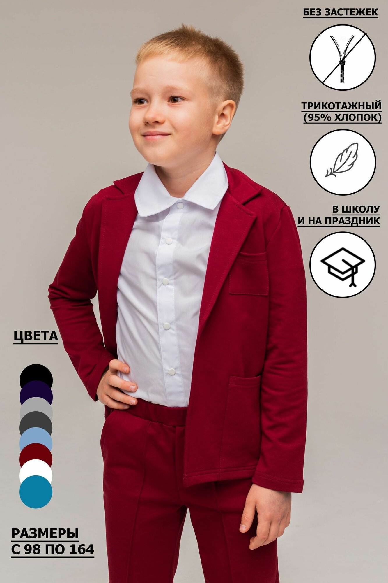 жакет детский для мальчика трикотажный / пиджак школьный / в школу на праздник / бордовый красный 134