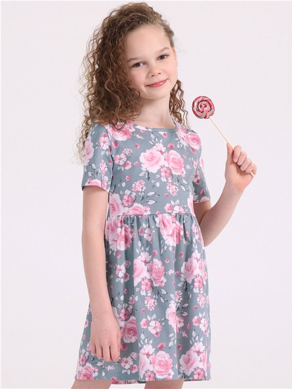 Платье нарядное летнее трикотажное хлопок 100% Апрель 1ДПК3999001н/243/*/3461/*/*/*/* розовый,серый,зеленый 72-140
