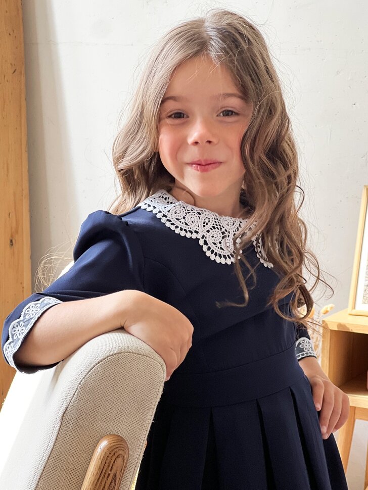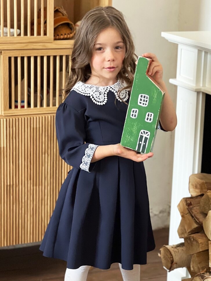Платье для девочки школьное бушон SK11, цвет темно-синий (134-140) интересное: