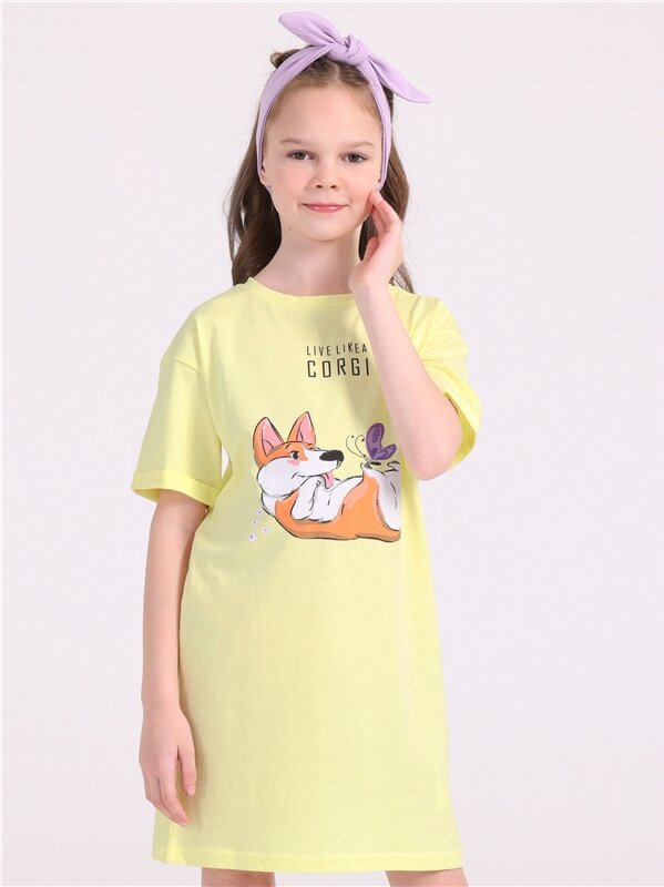Платье - футболка для девочки летнее короткое туника детская Апрель 1ДПК4284001/1425/1917/*/2297/*/*/* желтый 88-164