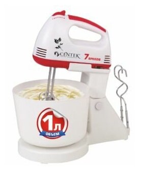 Миксер с чашей Centek CT-1113 (белый/красный) 170Вт, 6 скоростей+турбо, взбивание/замешивание