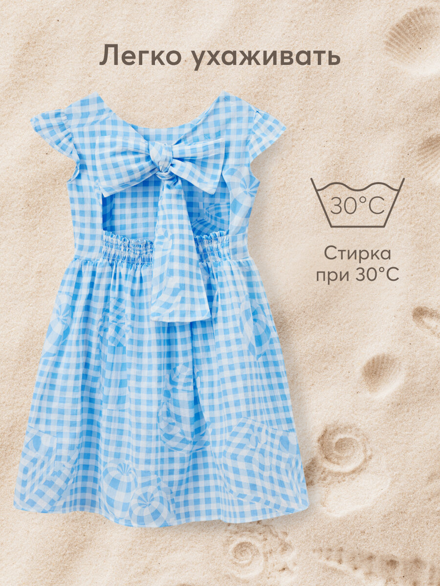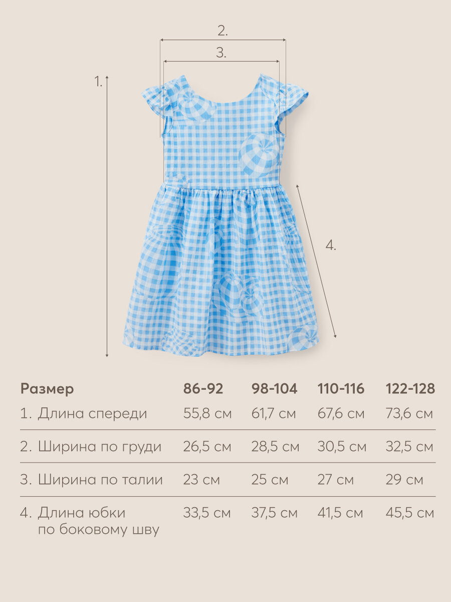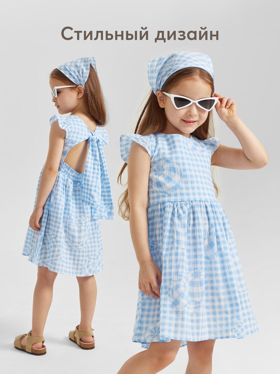 Сохранить88158, Платье для девочки Happy Baby, сарафан для девочки летний из хлопка, с пышной юбкой, голубая в клетку, размер 98-104 интересное: