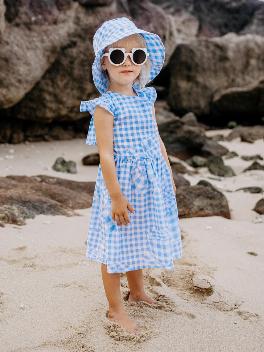 88158, Платье для девочки Happy Baby, сарафан для девочки летний из хлопка, с пышной юбкой, голубая в клетку, размер 86-92