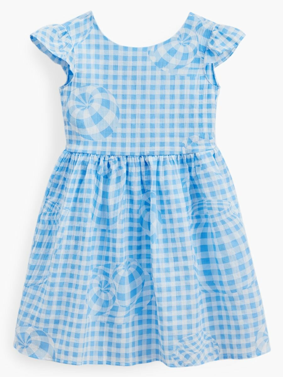 88158, Платье для девочки Happy Baby, сарафан для девочки летний из хлопка, с пышной юбкой, голубая в клетку, размер 122-128