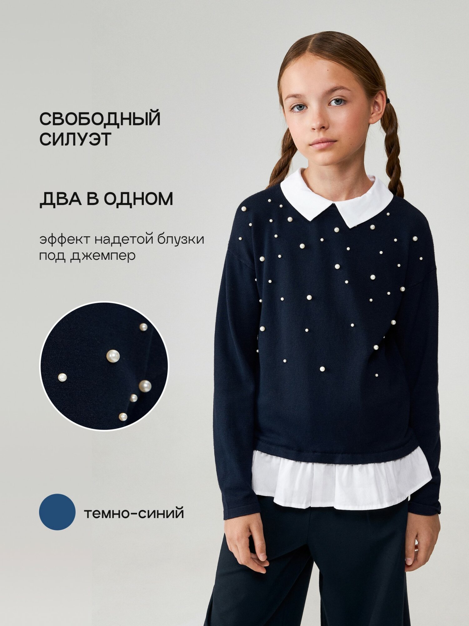 Джемпер ACOOLA Nicolet темно-синий для девочек 158 размер интересное: