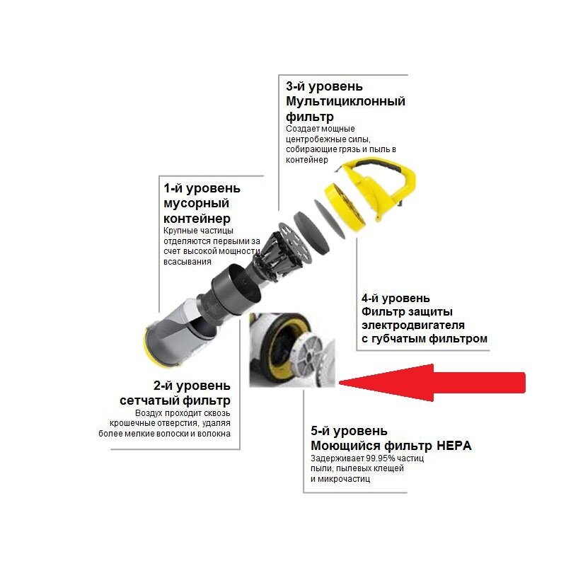 Этот фильтр не чищу, только второй, который расположен в ручке у циклона Менял бы регулярно, но цена в 1.5к-2к отпугивает сильно, второй фильтр меняю чаще, он стоит 500р +- Пылесос покупали за 6к, то есть как 3 комплекта фильтров) 4 звезды за цену, в остальном все нормально |